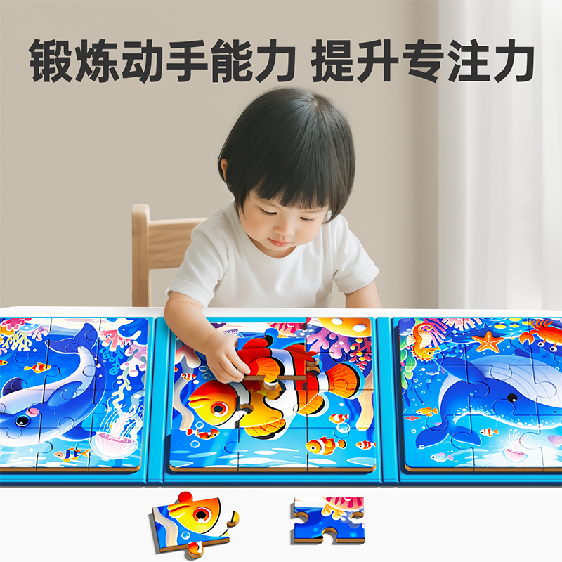 拼图3到6岁益智儿童蒙氏早教宝宝专注力训练开发智力动脑磁力玩具