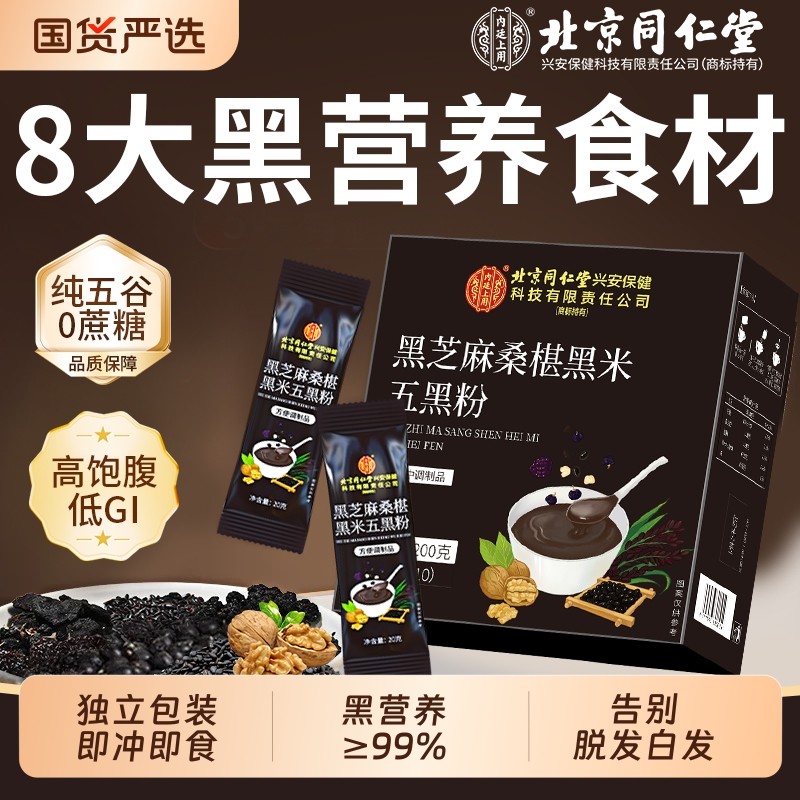 北京同仁堂五黑粉桑葚黑芝麻粉五谷杂粮黑豆粉营养冲饮内廷上用