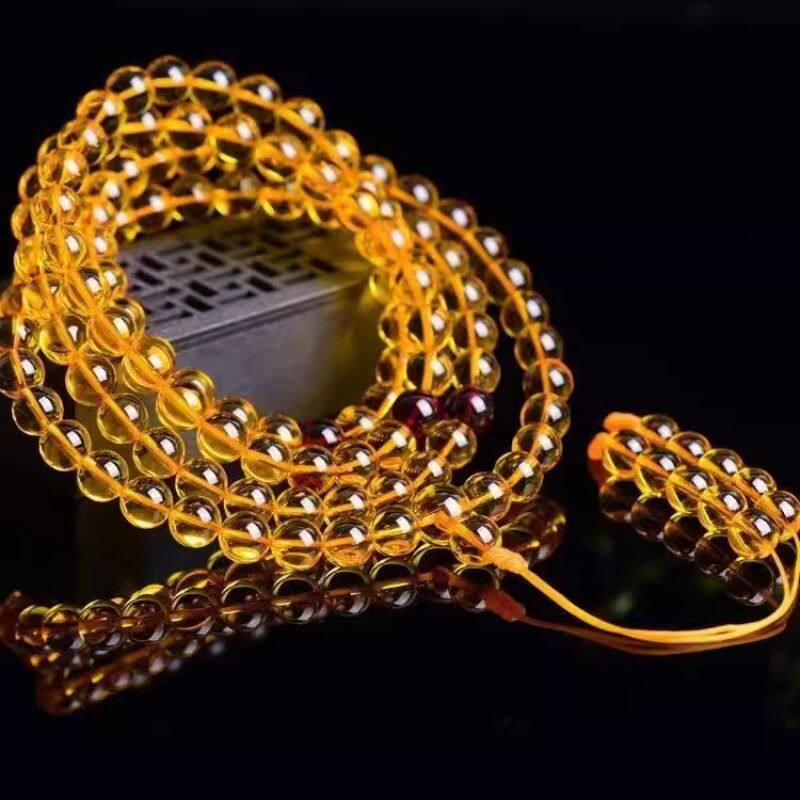 精选二代琥珀蜜蜡佛珠链多圈手链男女108颗佛珠树脂蜜蜡手串项链