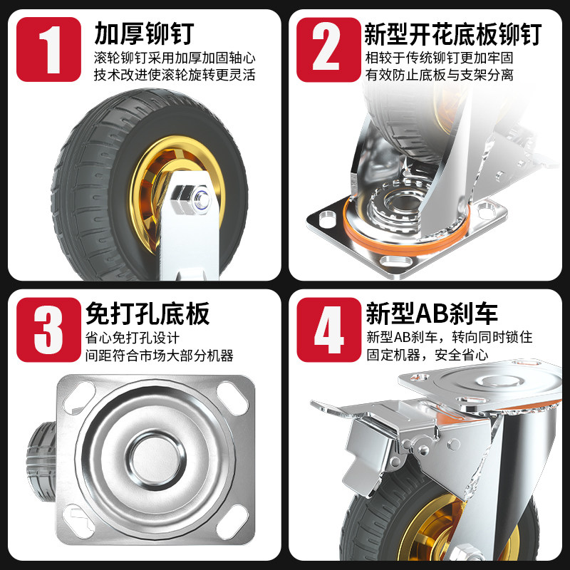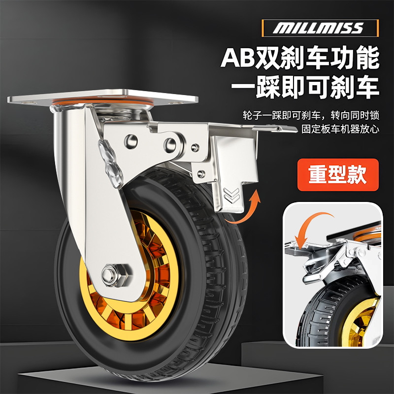 承重万向轮轮子橡胶轮实心重型4568寸平板手推车静音滑轮承重脚轮