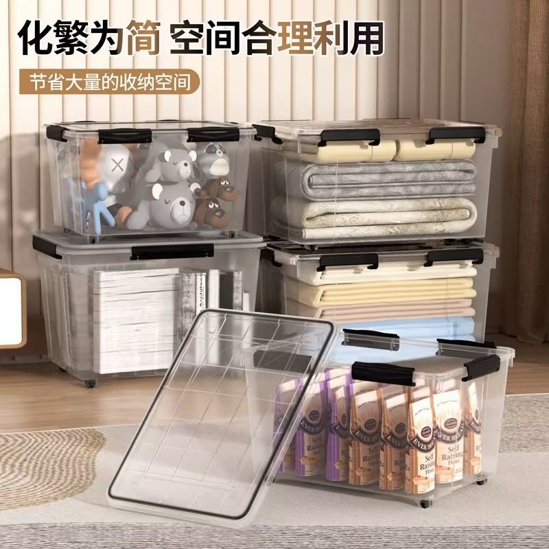 密封收纳箱茶叶防潮周转箱相机收纳盒透明带轮大容量整理箱子防水