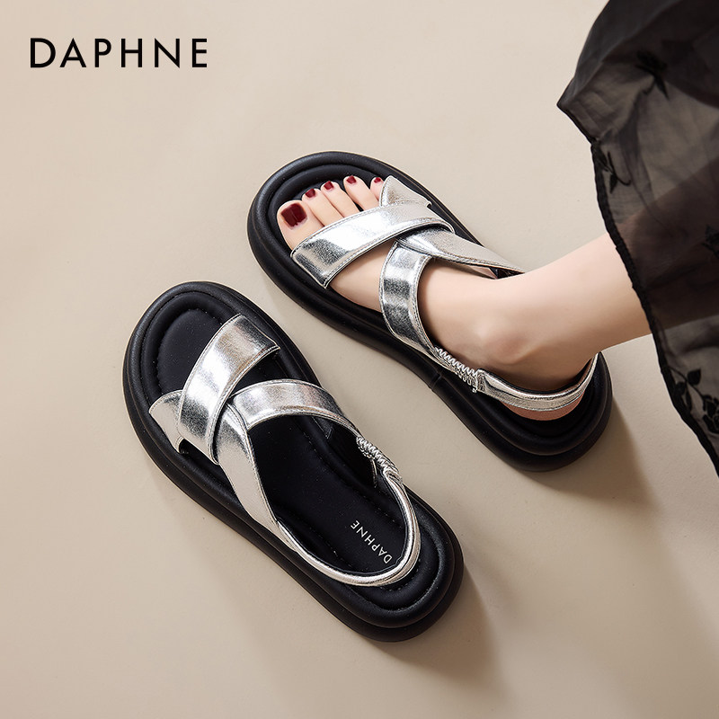 达芙妮银色凉鞋女2025新款夏季外穿配裙子绝美厚底运动女士凉拖鞋