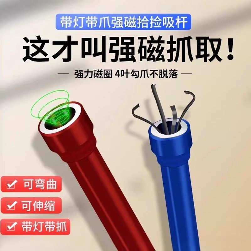 吸铁棒强磁吸力棒汽修专用强磁拾捡器手持带灯可弯曲强力磁铁吸棒