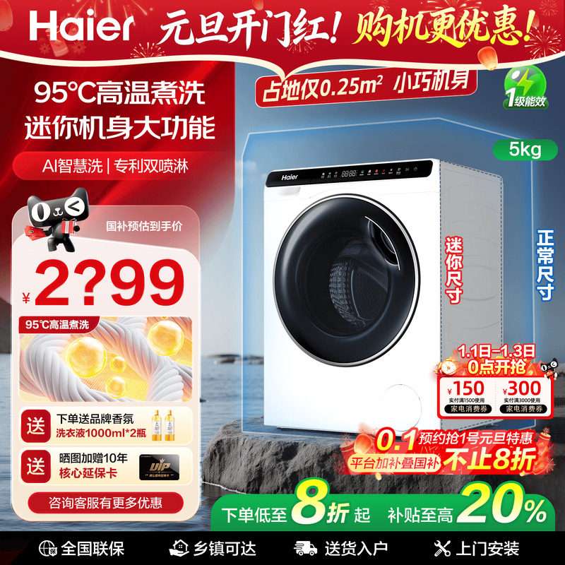 【换新补贴】海尔迷你滚筒洗衣机5公斤婴儿全自动高温除菌家用808
