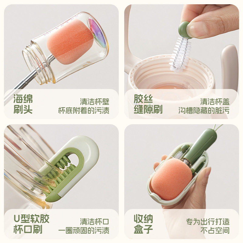 长柄杯刷三合一便携奶瓶刷水杯清洁刷海绵刷清洗神器吸管刷无死角