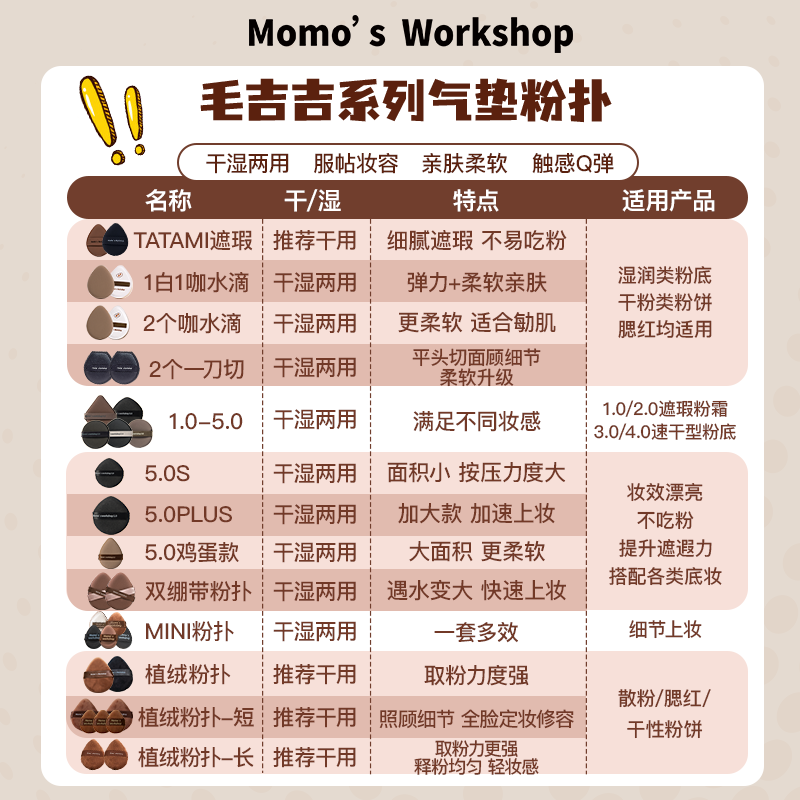 毛吉吉系列粉扑植绒适用于散粉Momo'sWorkshop粉底液粉丹宁海绵
