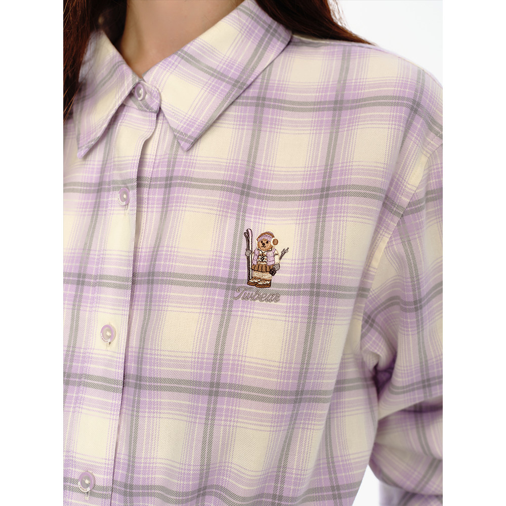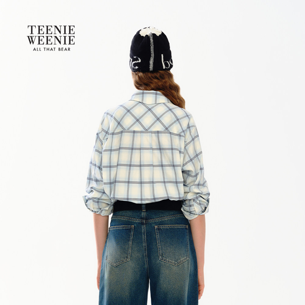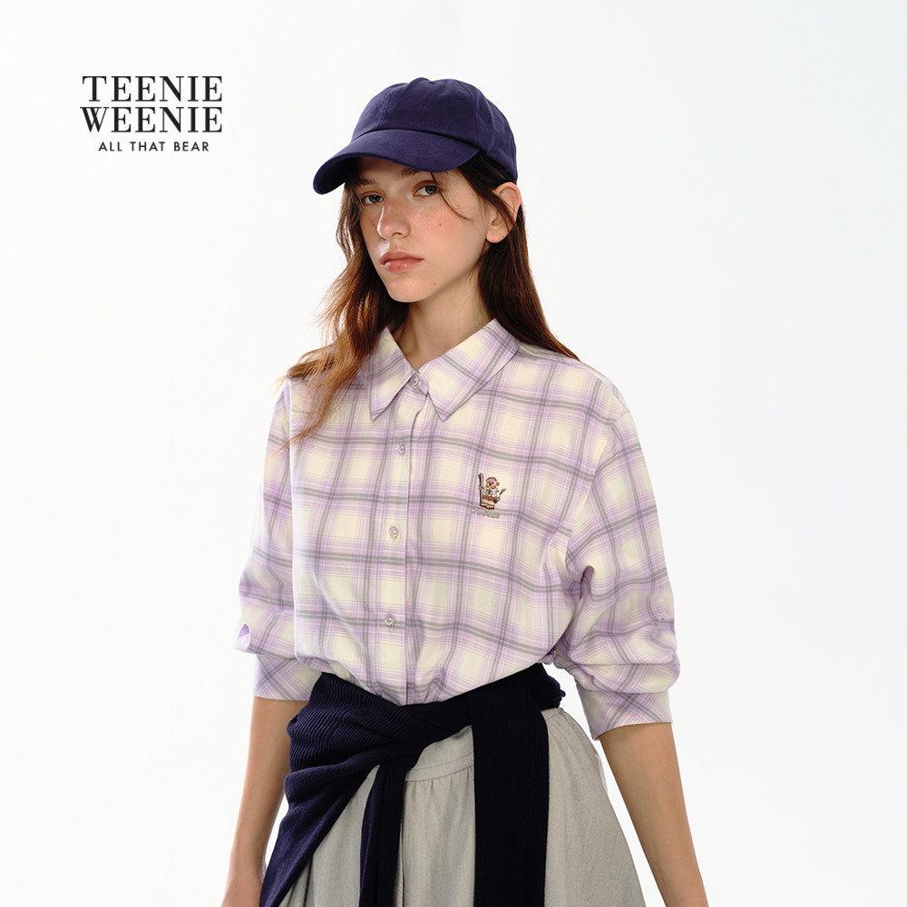 TeenieWeenie小熊女装衬衫冬季时髦趣味刺绣彩色翻领格纹衬衣上衣