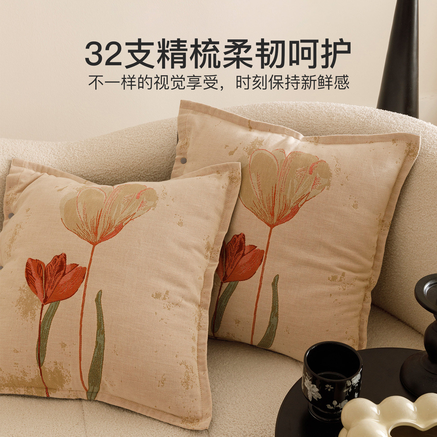 洁丽雅纯棉抱枕沙发腰部支撑靠垫客厅抱枕套床头靠枕可拆洗腰枕
