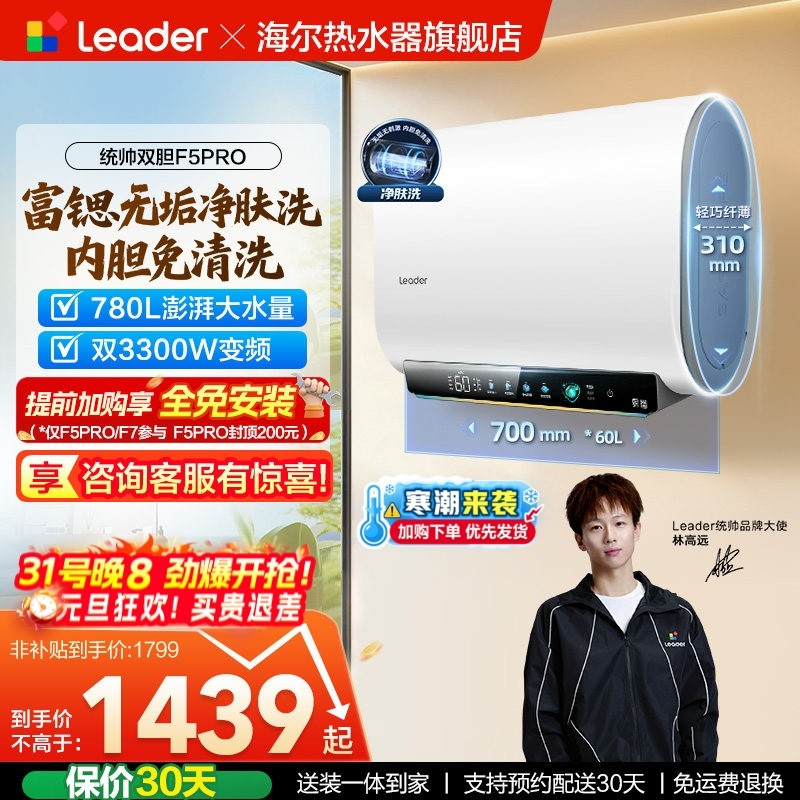 海尔出品统帅电热水器官方一级能效F5PRO超薄家用洗澡净肤洗扁桶
