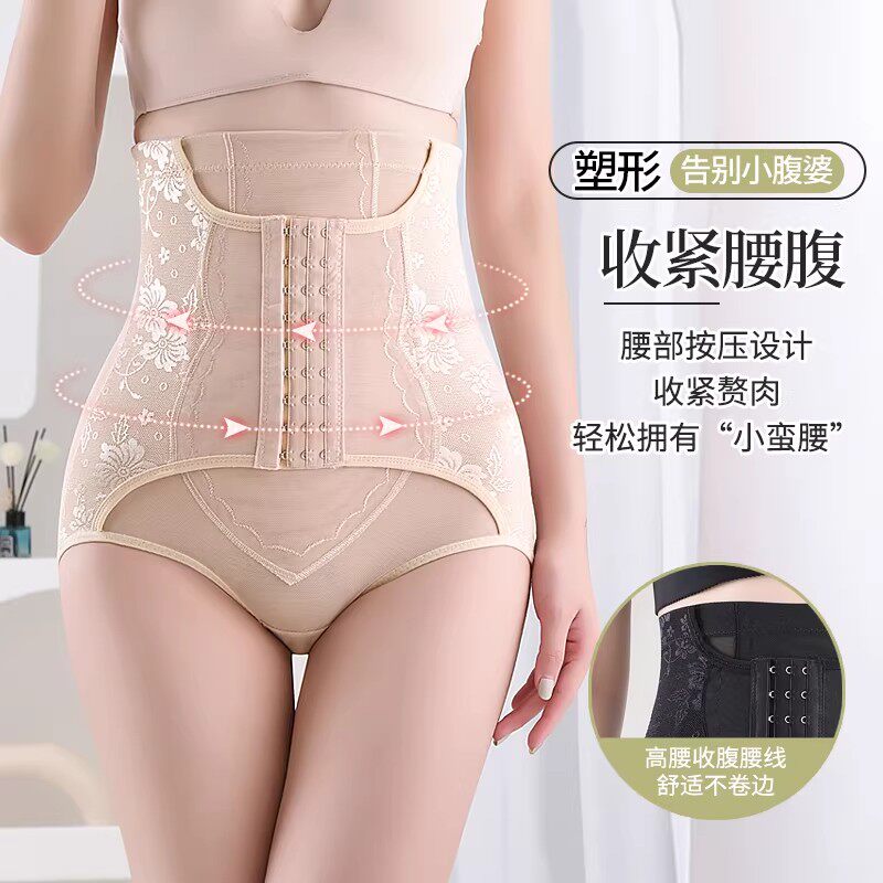 女士收腹裤提臀塑身高腰内裤女式产后美体肤束腰塑形强力薄款排扣