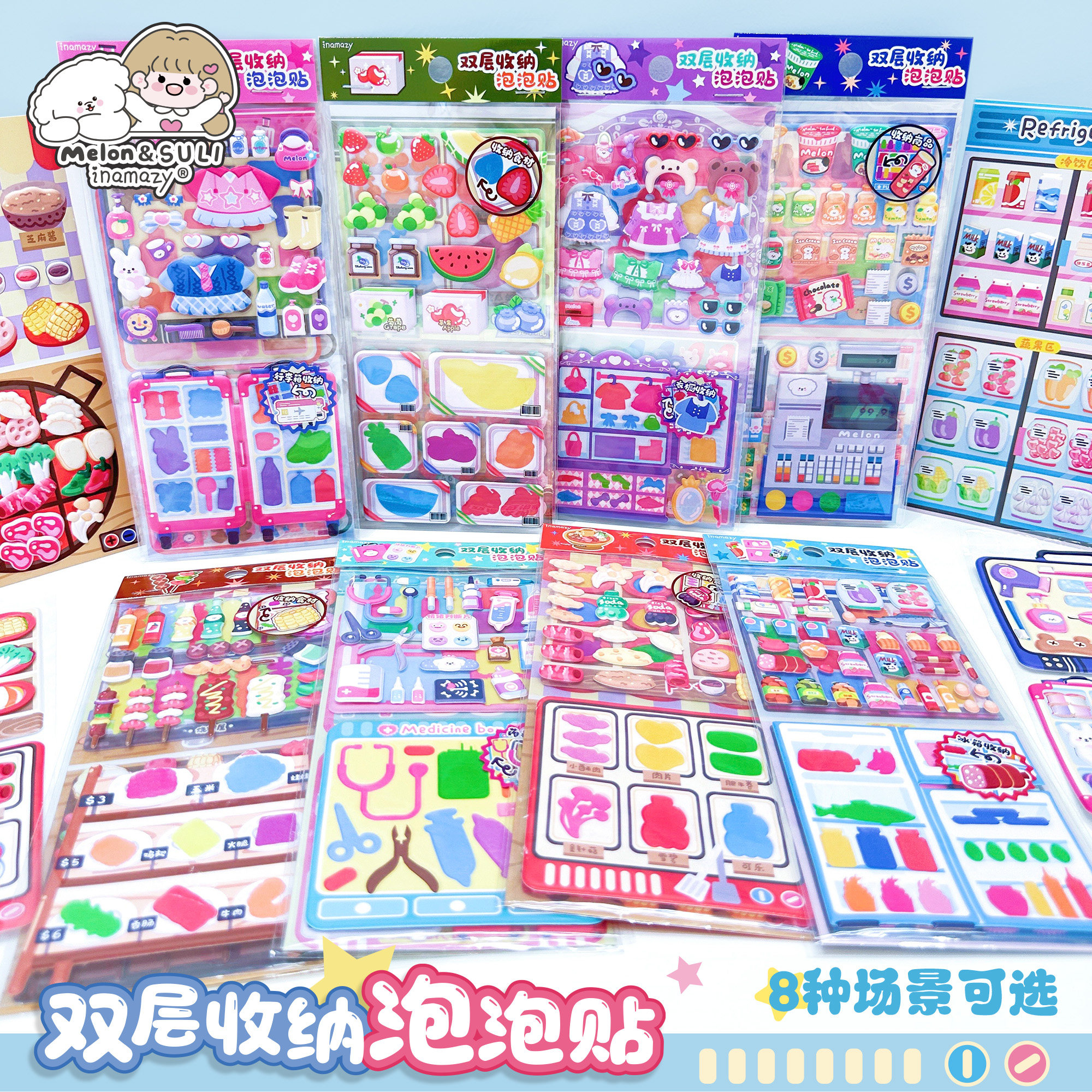 inamazy双层泡泡贴立体贴纸套装色彩鲜艳卡通动物造型贴纸包儿童手工材料
