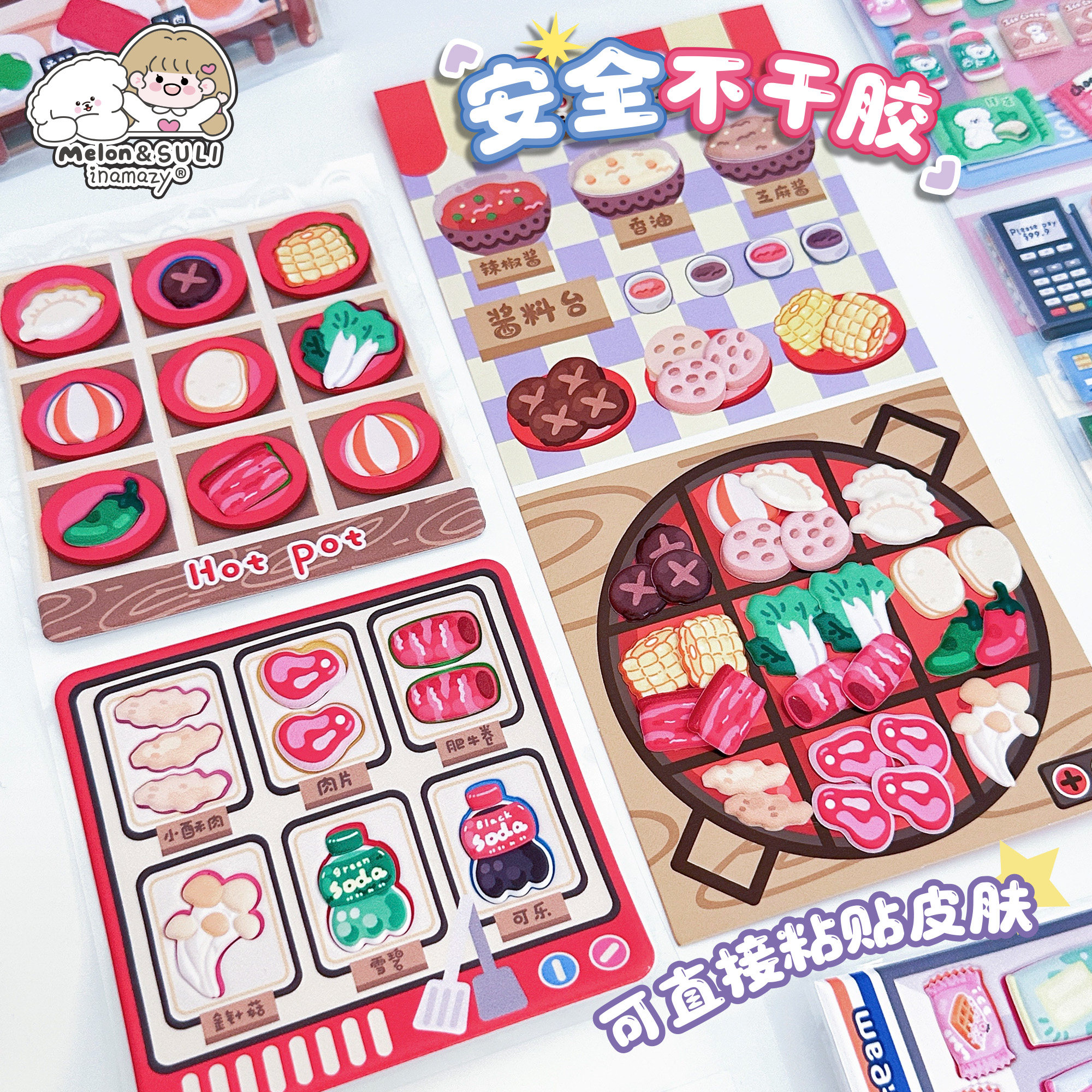 inamazy贴纸DIY美食料理捏捏解压儿童女孩玩具安静书儿童捏捏乐