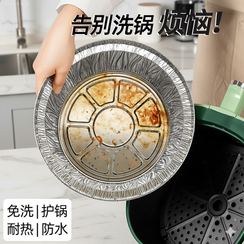 空气炸锅专用纸锡纸盘烧烤箱烘焙锡箔碗家用锡纸盒食品级圆盘
