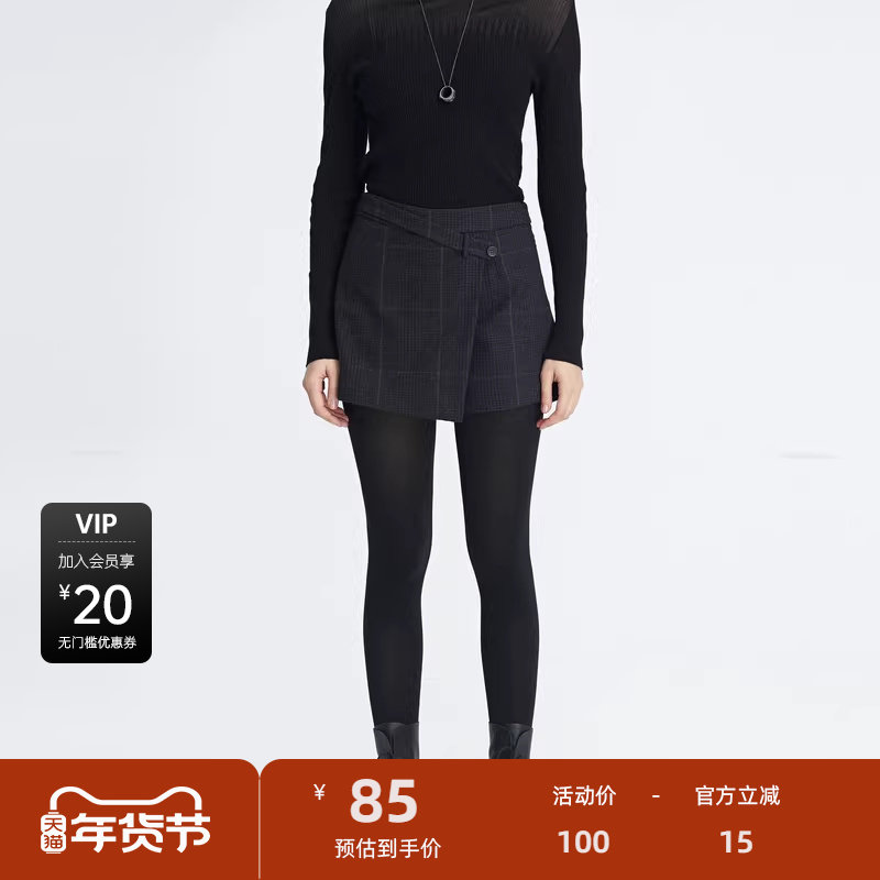 sdeer圣迪奥女装复古格纹搭片拼接毛呢短裤季裤子女S20480909
