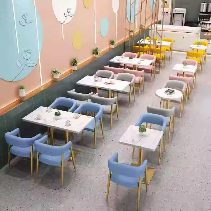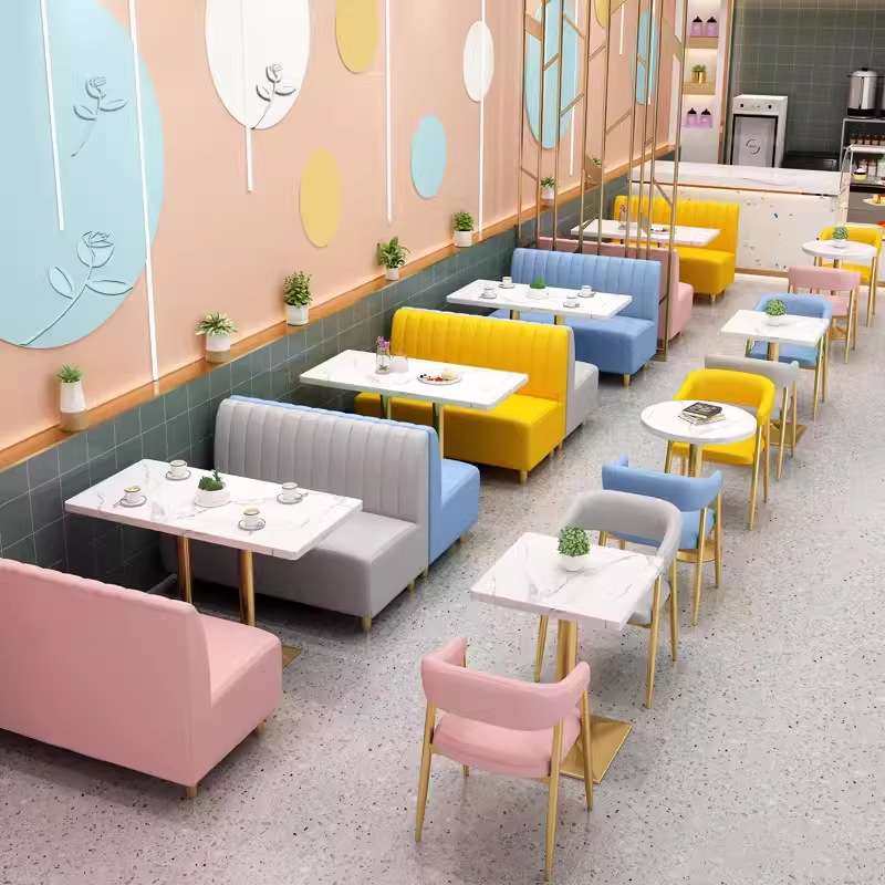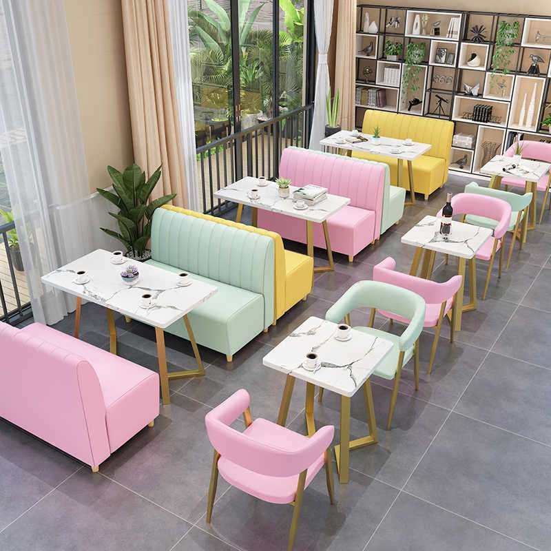 商用餐饮家具奶茶店仿大理石餐桌甜品店小吃店实木卡座沙发