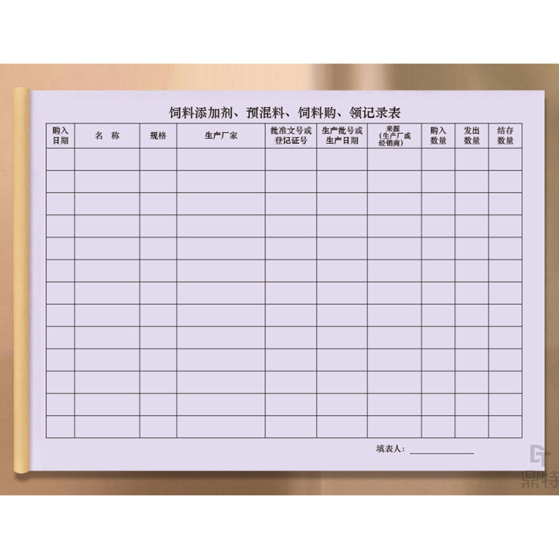 饲料添加剂预混料饲料购领记录表宠物医院兽医门诊兽医站鸡鸭鹅猪牛羊饲养养殖畜牧业饲料加工原辅料添加剂本