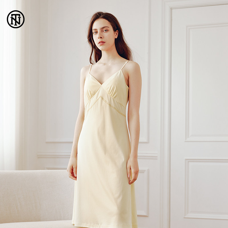 睡裙女夏季吊带性感薄款蕾丝睡衣孕妇带胸垫纯棉莫代尔宫廷公主风