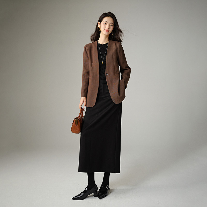 COCOBELLA高智感拼接人丝无领西装女早春通勤休闲气质外套SI533B