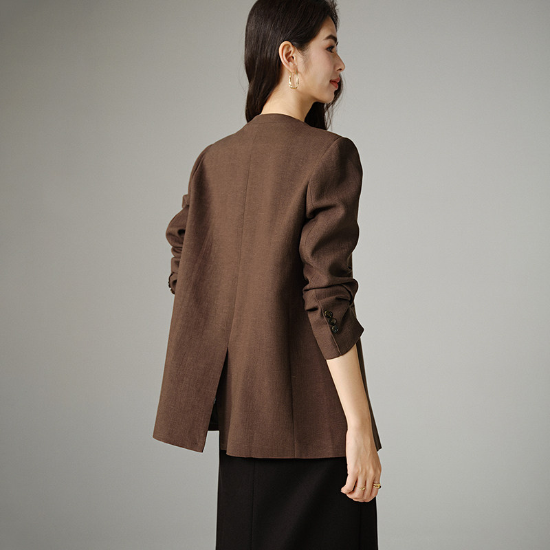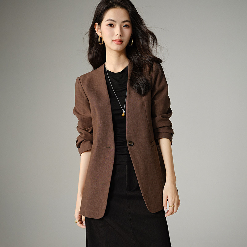 晚白2026年春新款职场轻正装莱赛尔亚麻一粒扣上衣百搭西装外套女