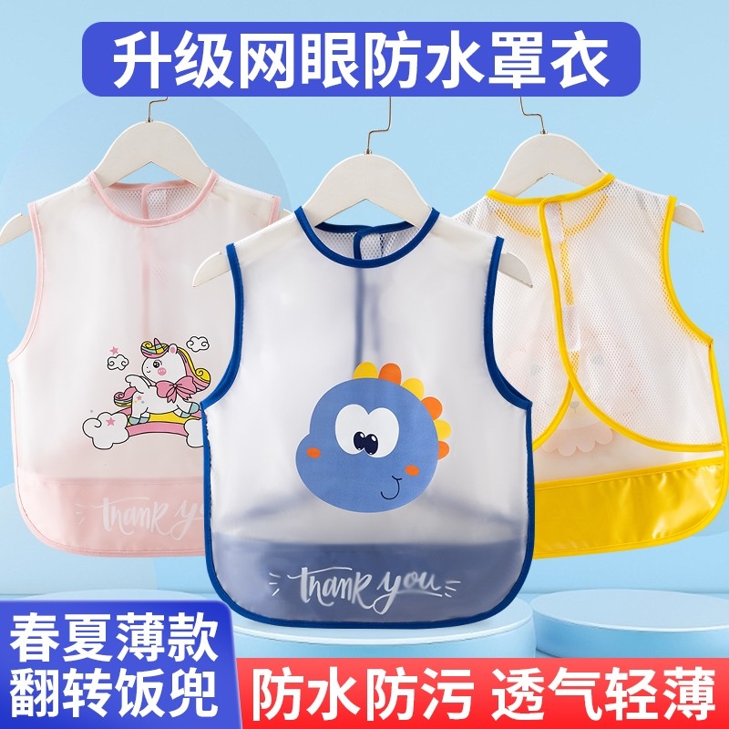 宝宝防水罩衣儿童吃饭兜透气网反穿衣小孩男女无袖婴儿防脏围裙薄