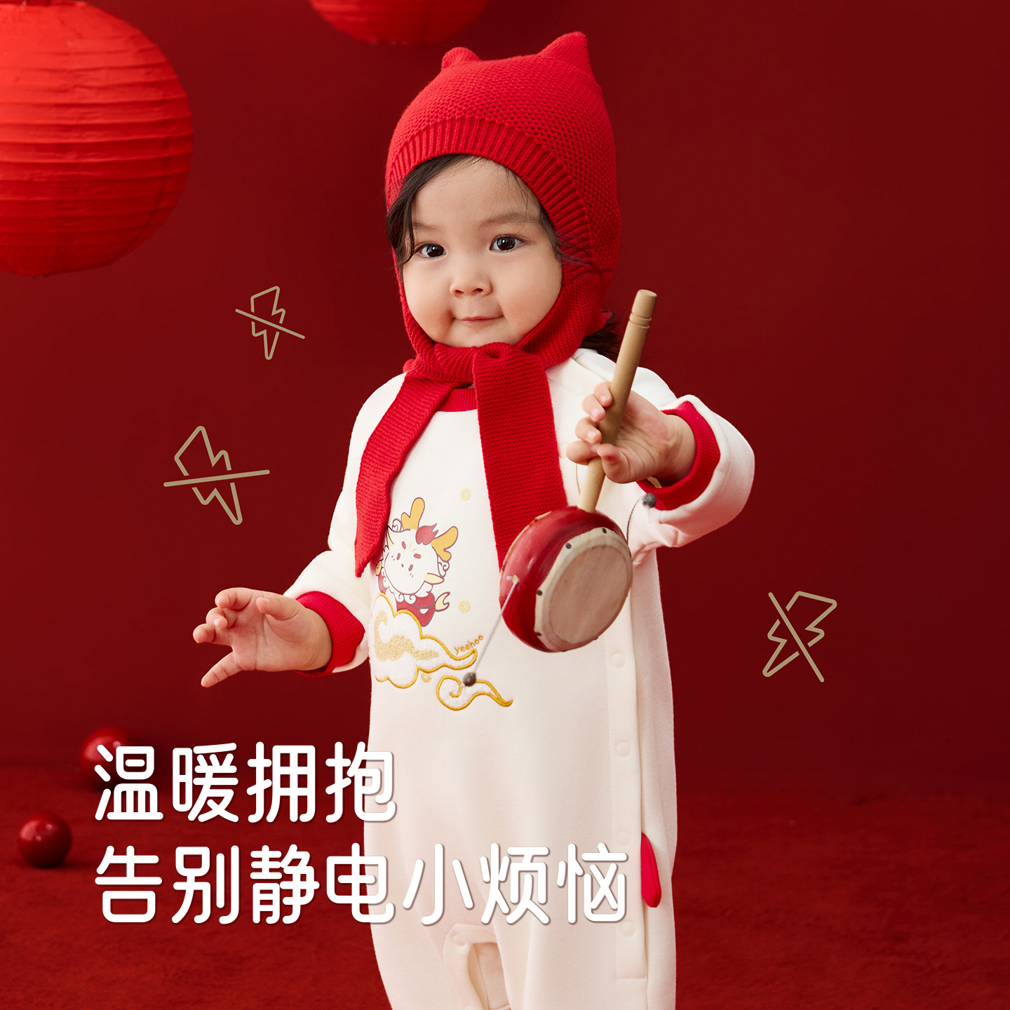 英氏婴儿连体衣宝宝儿童保暖新生儿秋冬新款哈衣新年喜庆春季红色