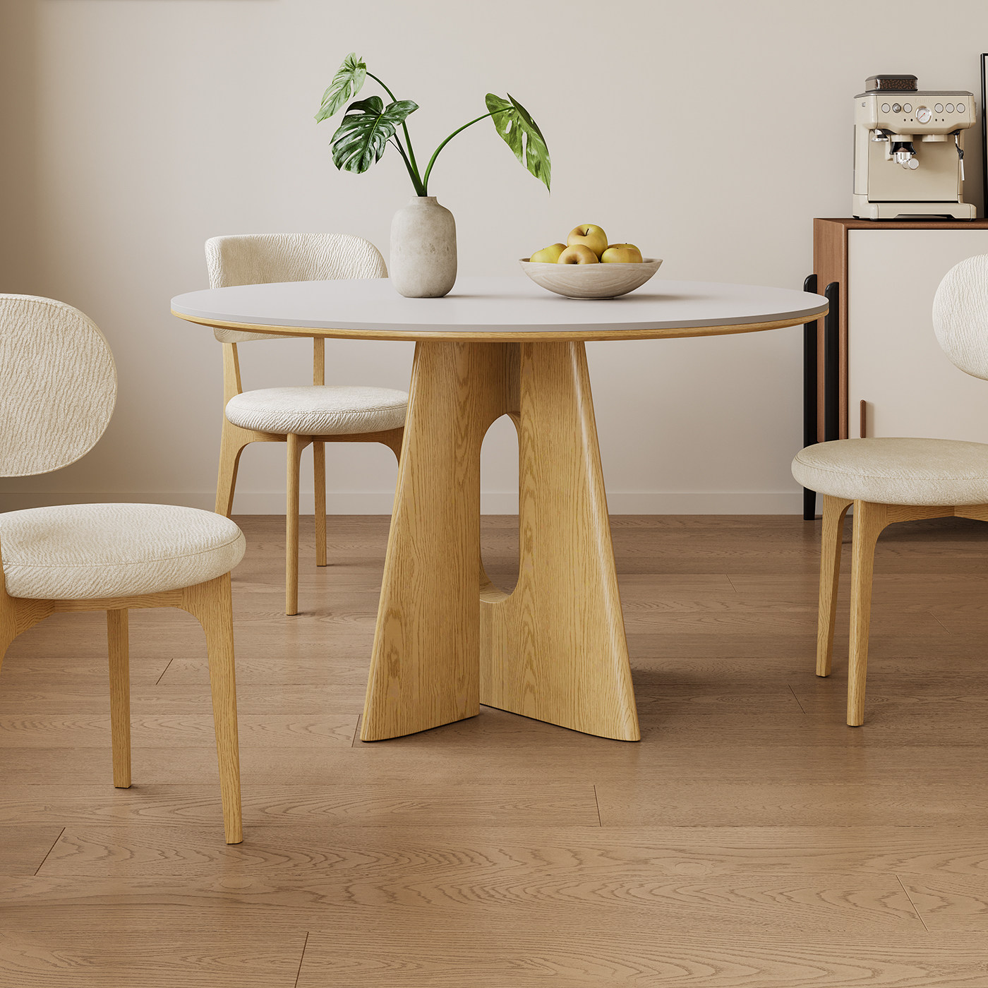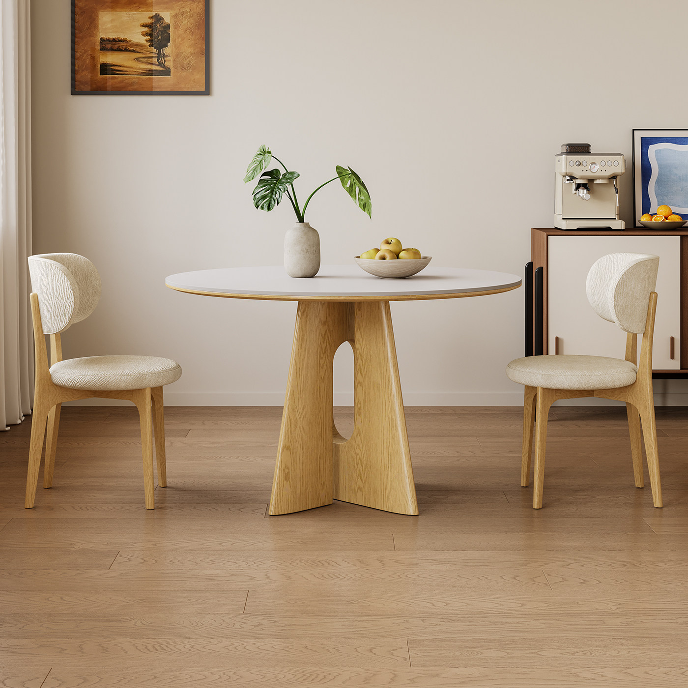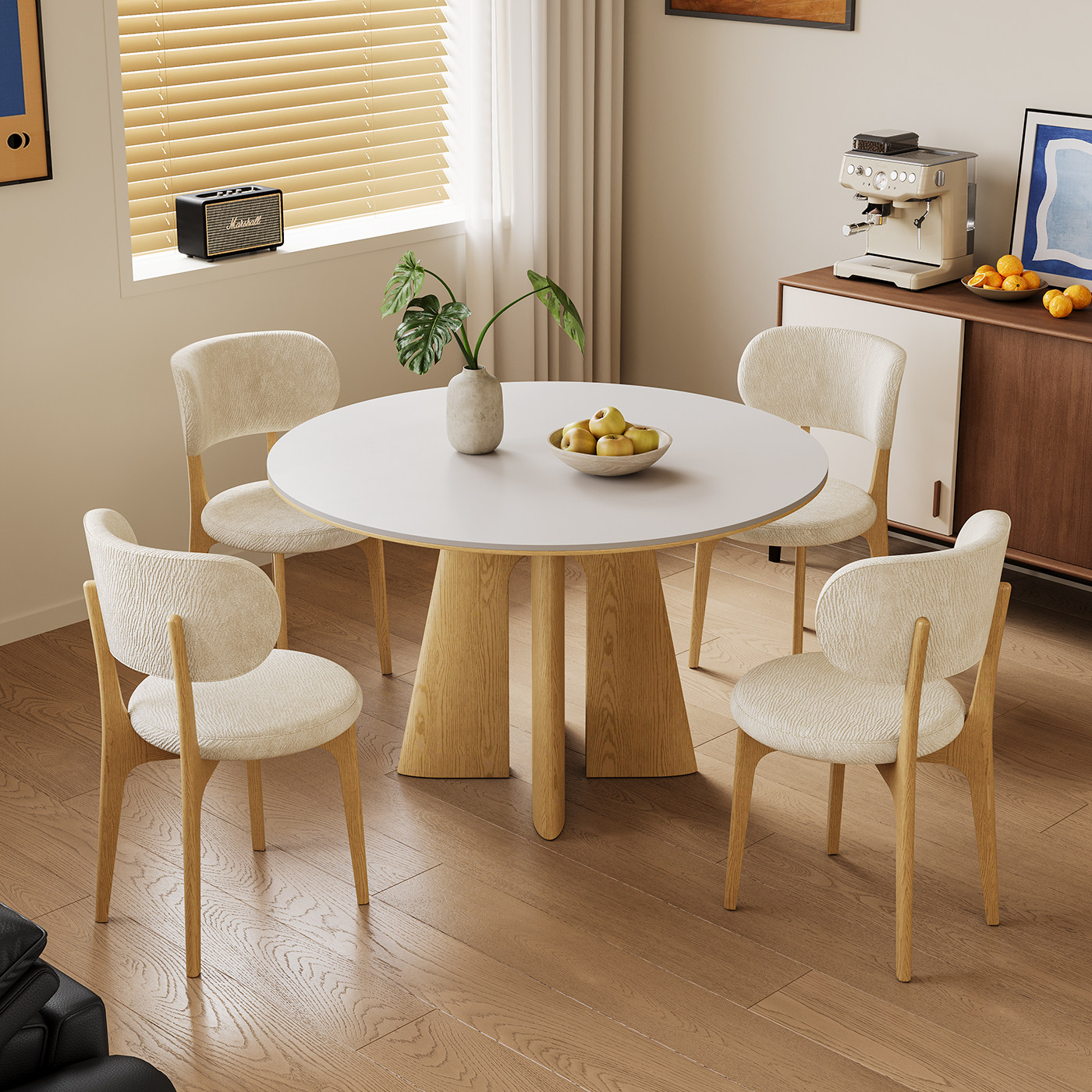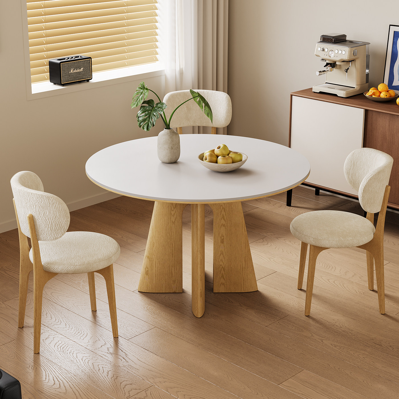 圆形实木餐桌家用小户型奶油风1.2米2025新款原木色纯白岩板餐桌
