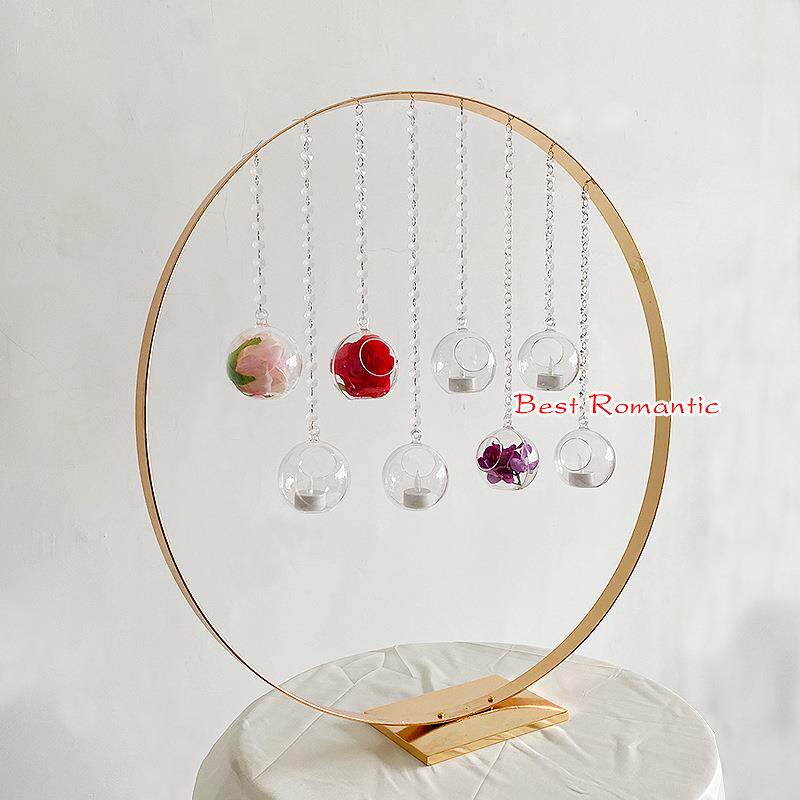 新款婚庆道具电镀铁架铁艺舞台装饰布置婚庆路引摆件珠帘吊球铁架