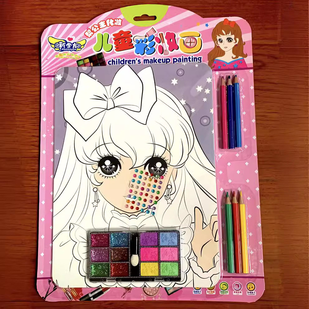 DIY涂鸦画儿童彩妆画女孩画画化妆玩具创意填色画手工制作儿童