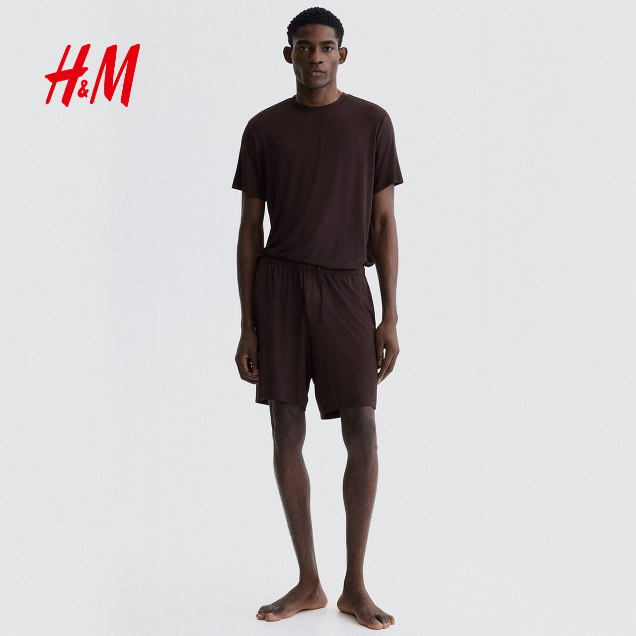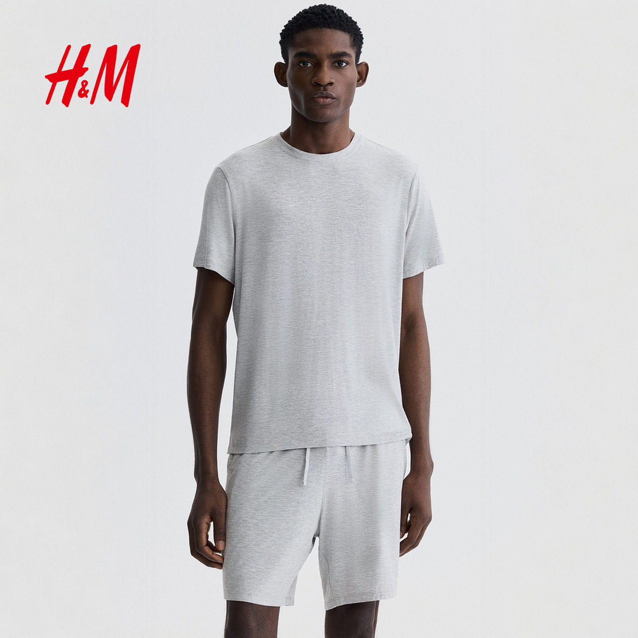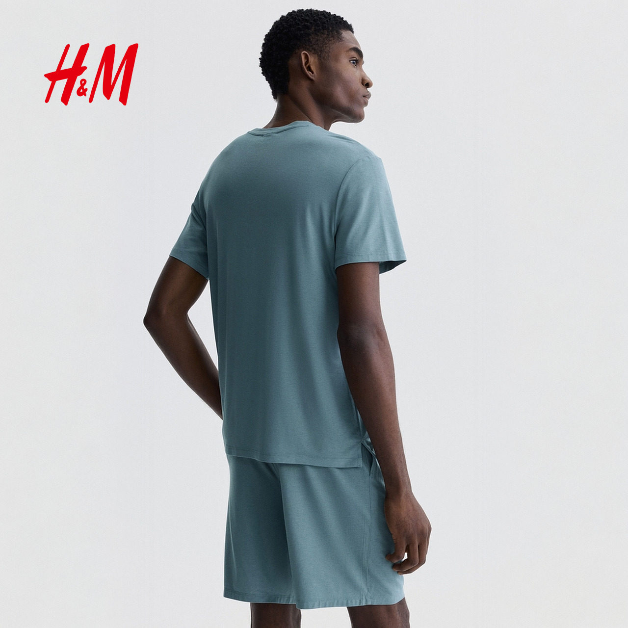 HM男士睡衣家居服套装2件式2026春季新款汗布T恤短睡裤1305075