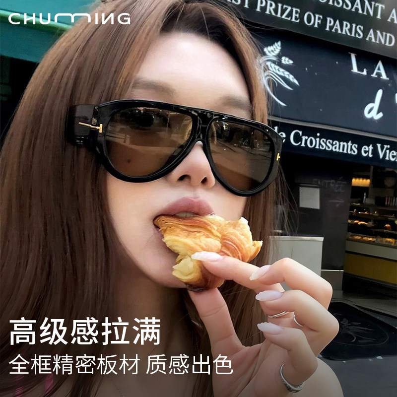 时髦复古飞行员防晒墨镜女款大框显脸小高级感板材太阳眼镜UV400