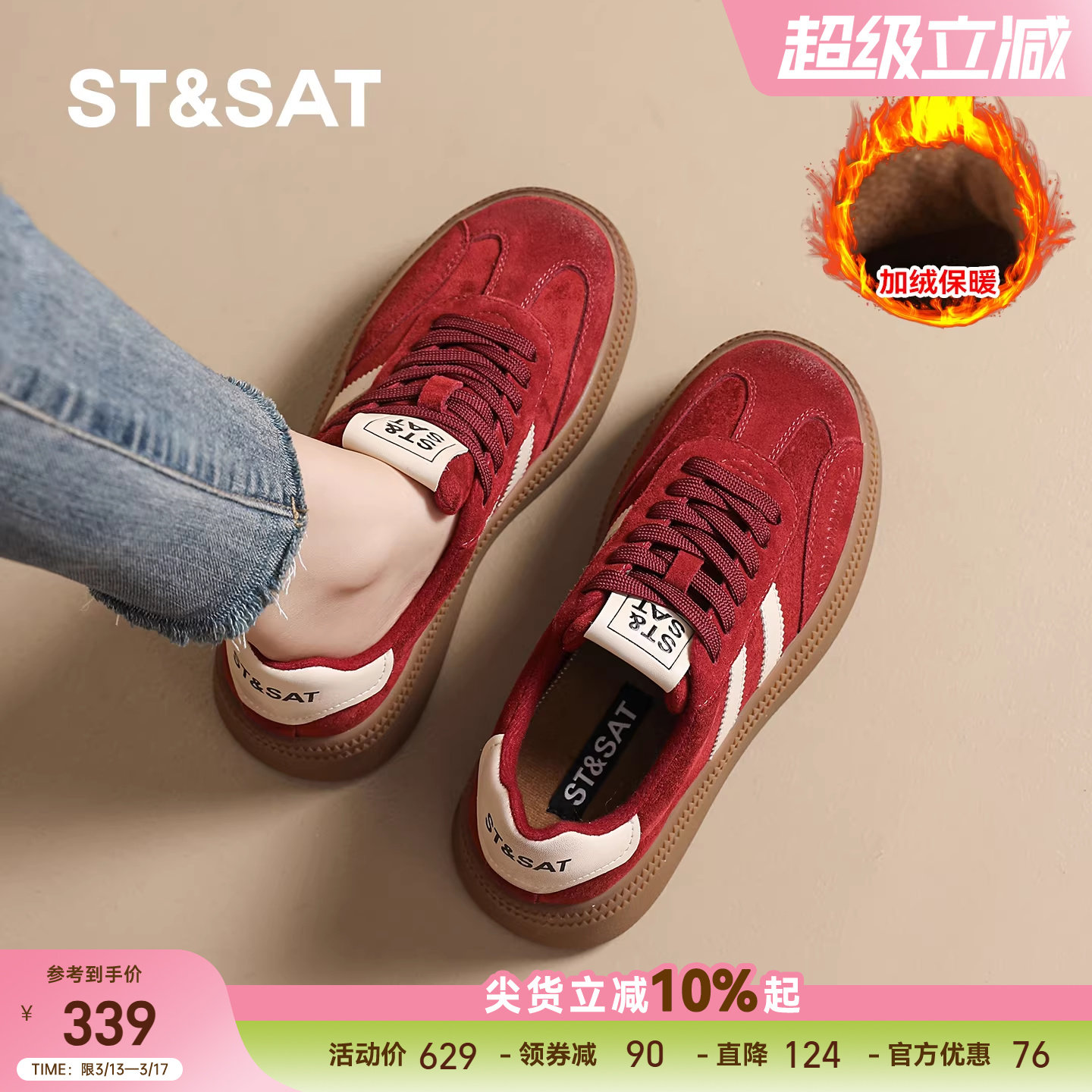 星期六德训鞋女2025新秋冬加绒保暖百搭厚底板鞋休闲运动鞋阿甘鞋