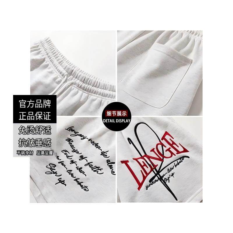 SLAMBLE美式休闲毛圈五分短裤男女健身宽松休闲吸汗潮字母夏季潮