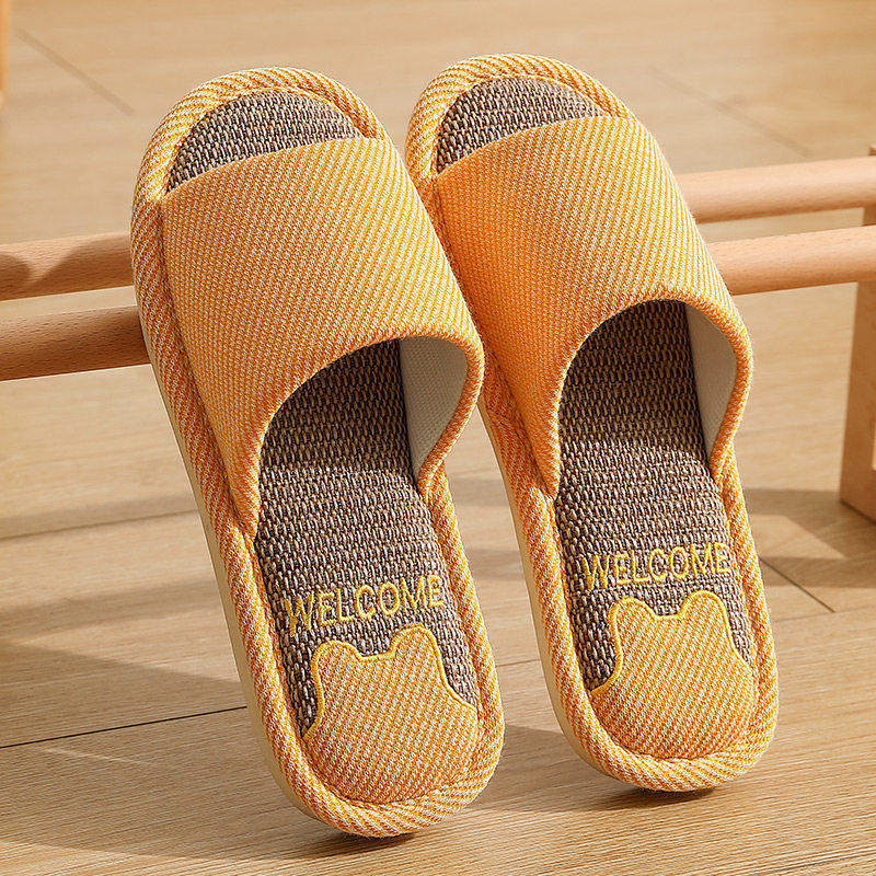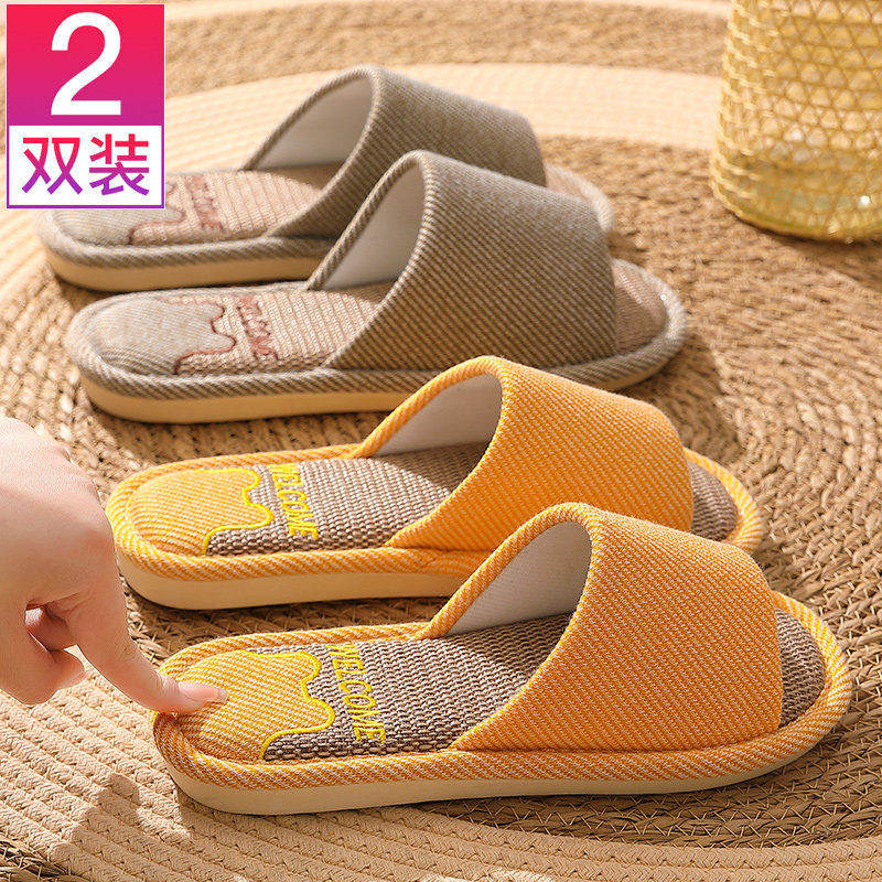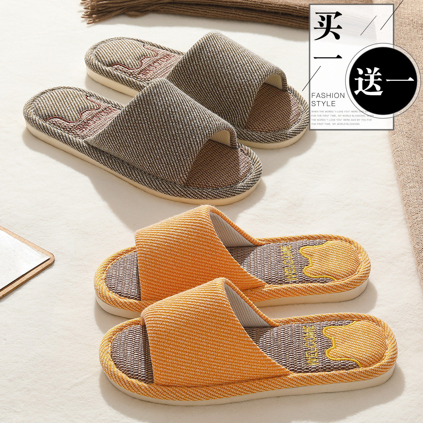 买1送1亚麻拖鞋女士情侣家居一对静音防滑家用招待客人棉麻拖鞋男