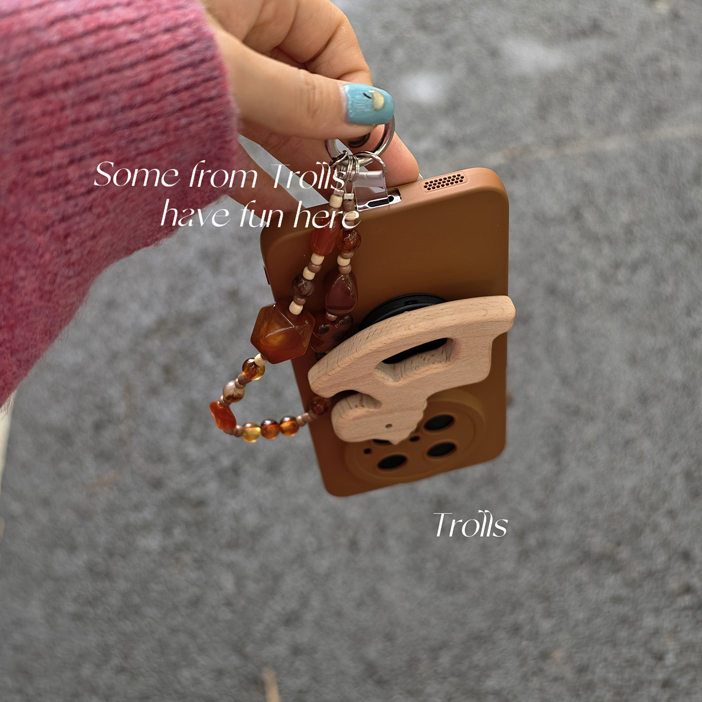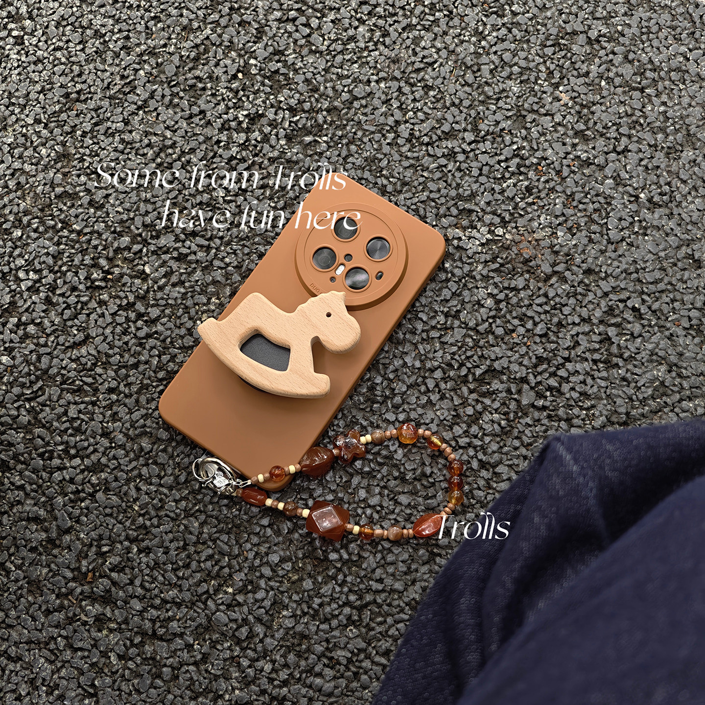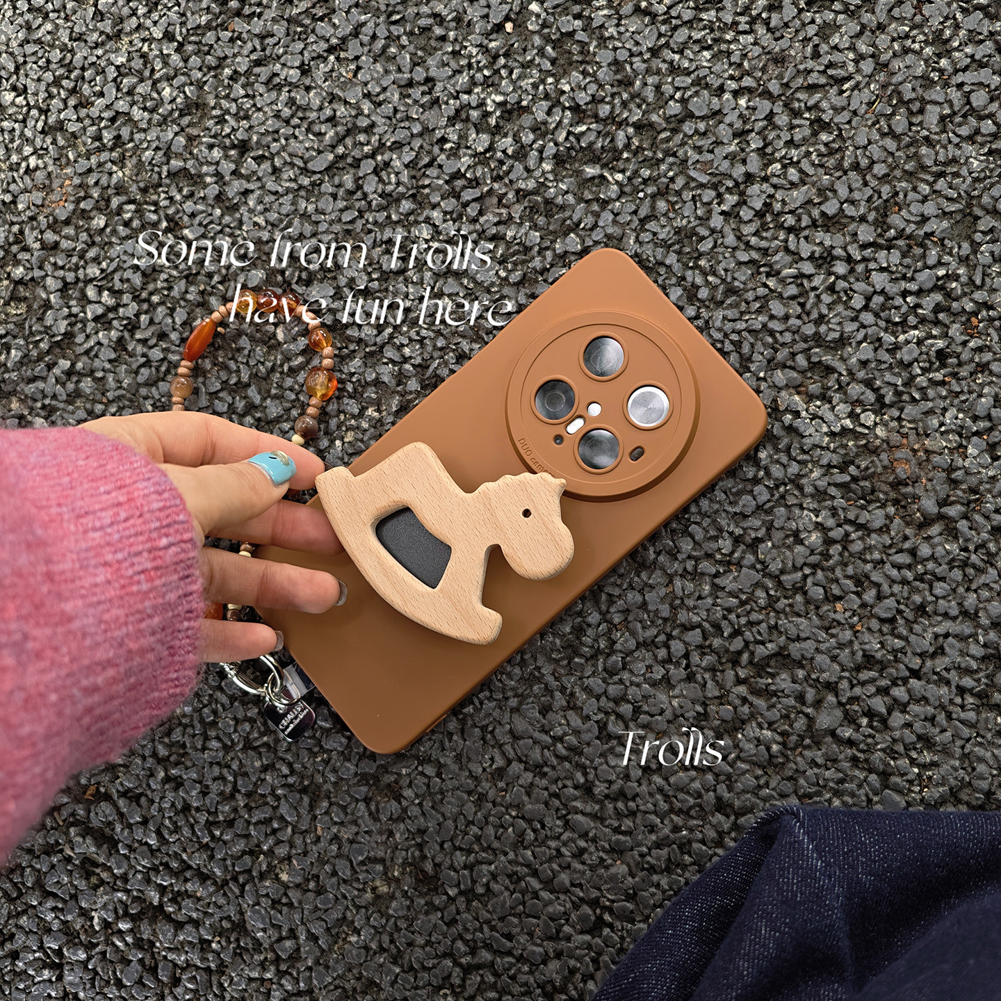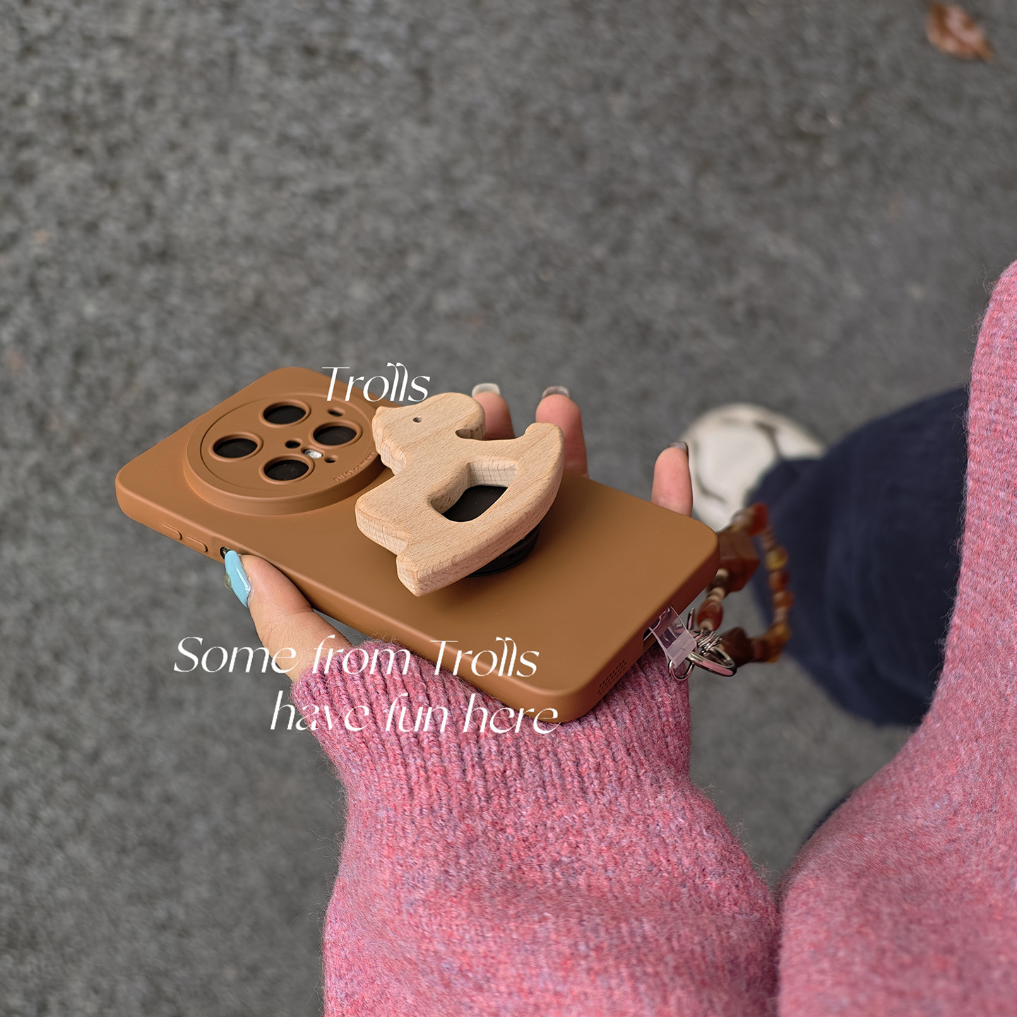 Trolls|独特焦糖棕色秋冬氛围感ins风木马支架手提琥珀链条手机壳适用mate70pro华为pura80小米17苹果16x300
