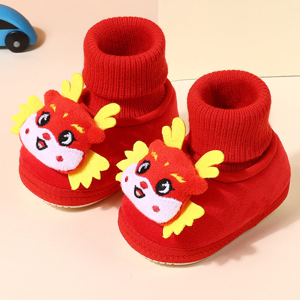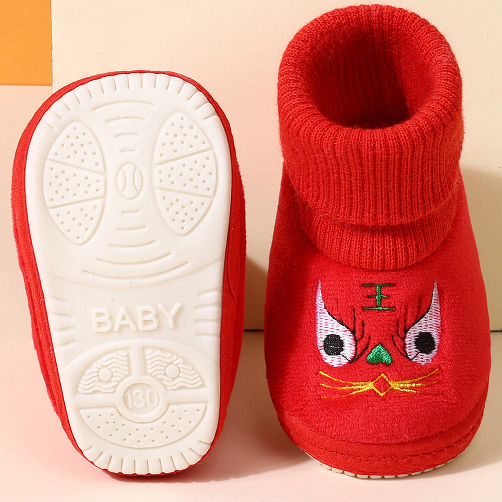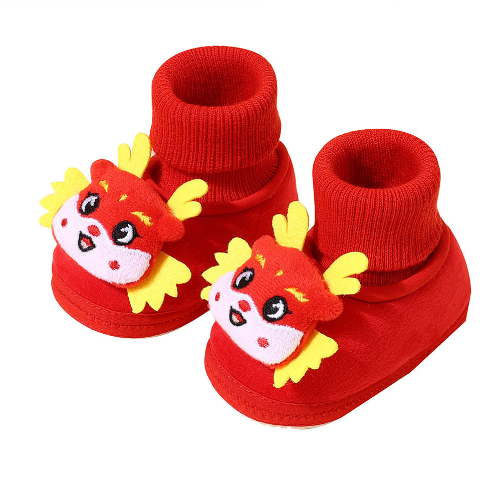 婴儿步前鞋红色百天周岁过年宝宝袜子软底袜鞋地板袜新年满月保暖