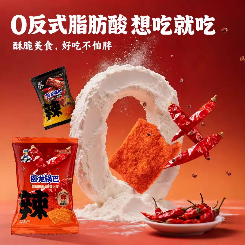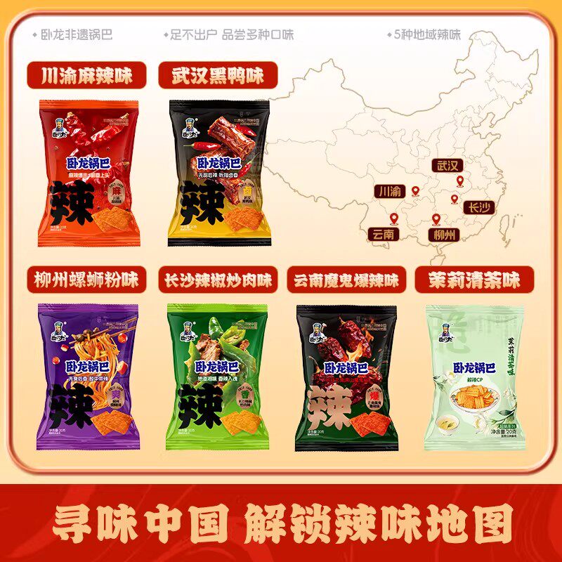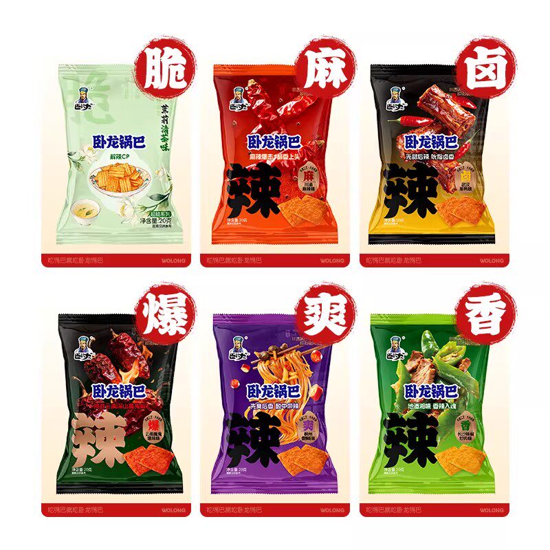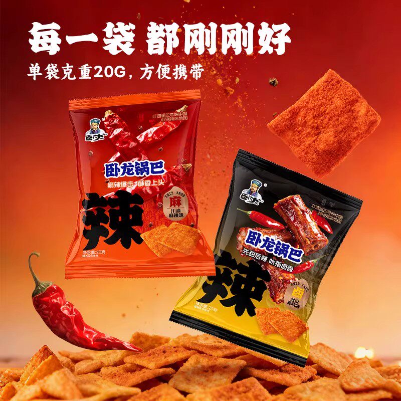 卧龙锅巴零食20g小包装闲手抓包解馋小吃休闲食品办公室散装麻辣
