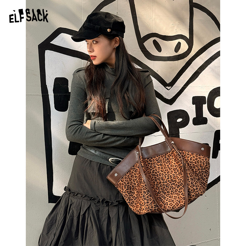 妖精的口袋复古豹纹大容量单肩包女2026新款时尚休闲百搭通勤包包