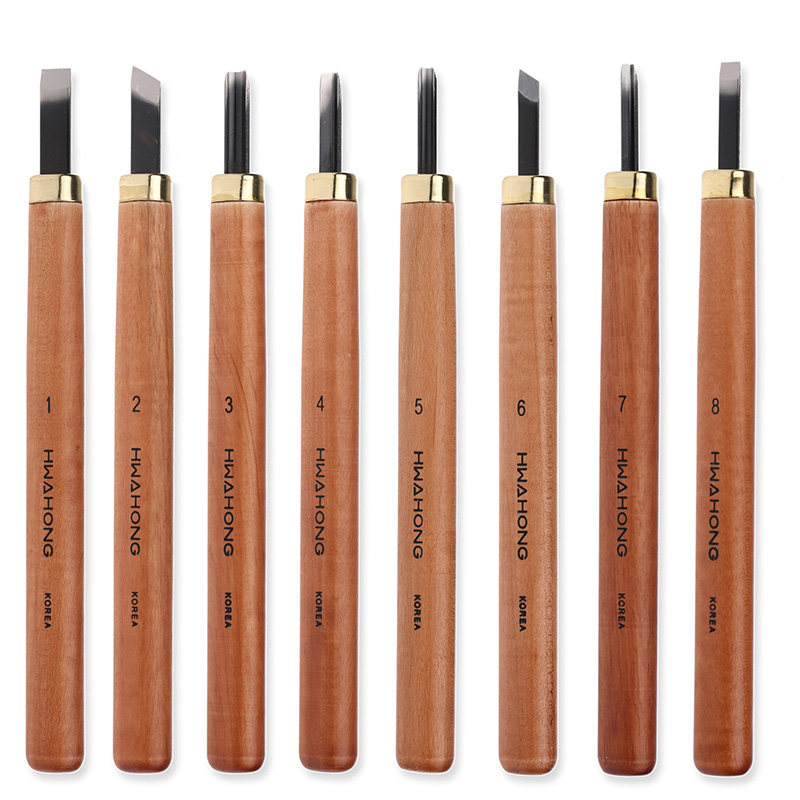 华虹刻刀 木刻刀版画雕刻刀模型模具版画工具木刻木雕橡皮印章刻画工具平头斜头三角头圆头刀HWAHONG韩国进口
