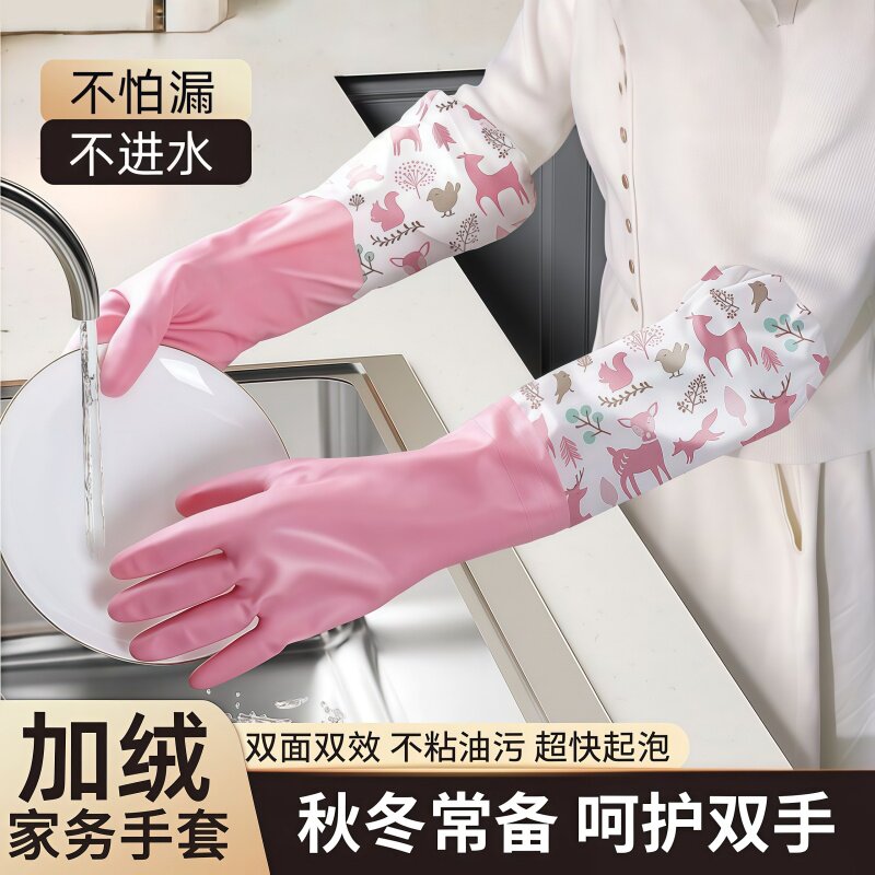 洗碗手套加绒加厚保暖款男女厨房耐用橡胶乳胶皮洗衣加长手套家务