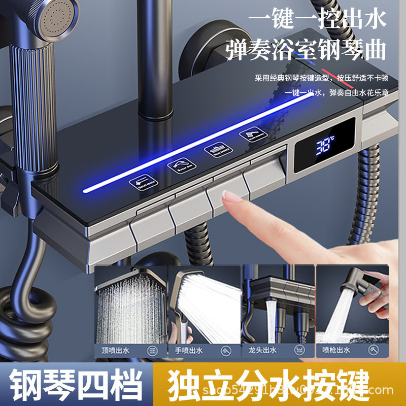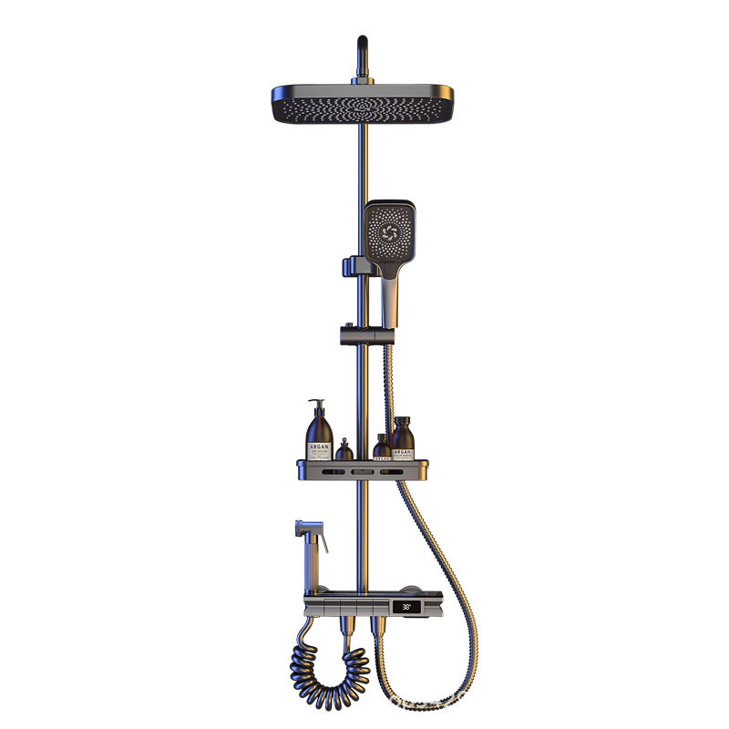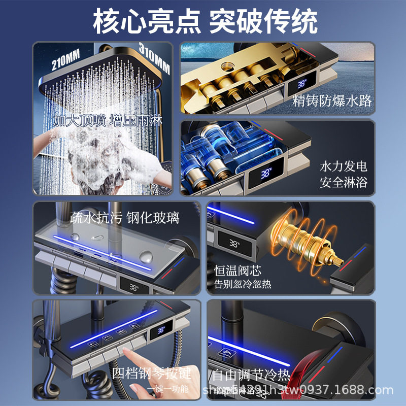 增压数显家用恒温洗澡喷头全套花洒套装卫生间金三月