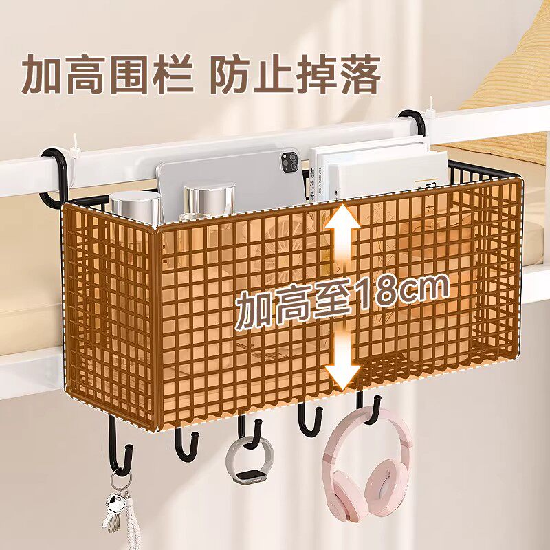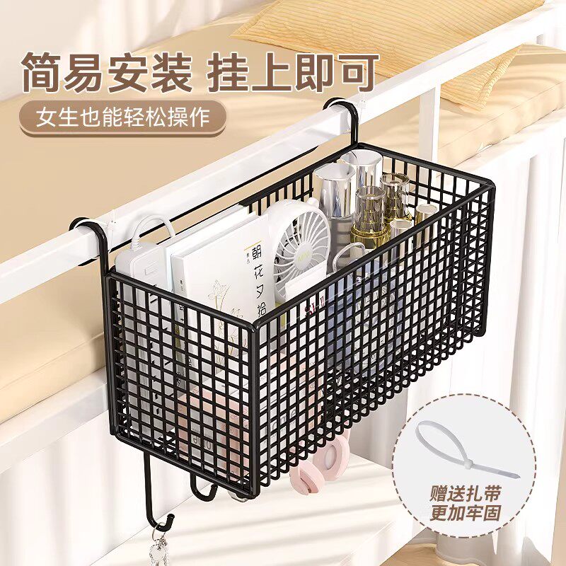 宿舍床边挂篮置物架床头免打孔上下铺零食架收纳篮神器卧室厨房
