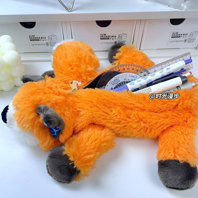 动物笔袋狐狸毛绒文具收纳袋可爱大容量高颜值玩具公仔玩偶文具盒