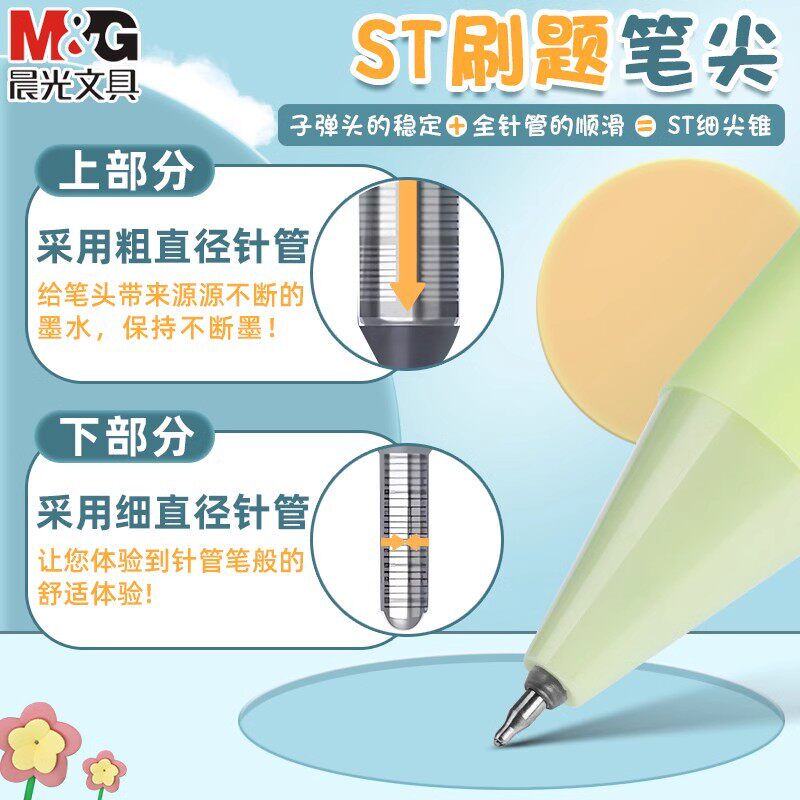 晨光文具直液式走珠笔水笔签字笔考试笔0.5MM大容量中性笔刷题笔教师专用红笔蓝笔初高中学生用简约全针管