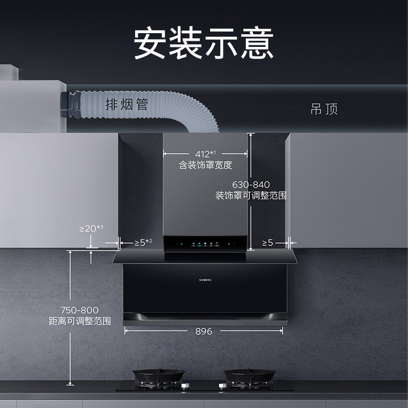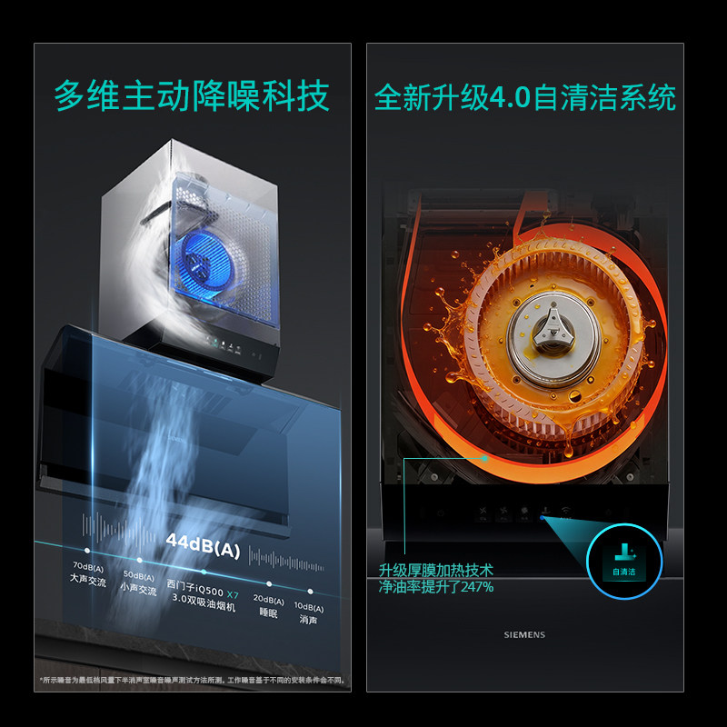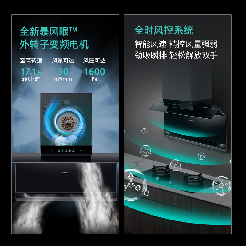 【新品】西门子X7系列顶侧双吸烟灶套装超薄大风量专利自清洁