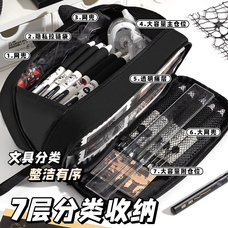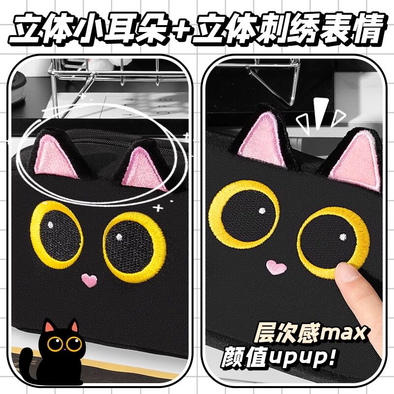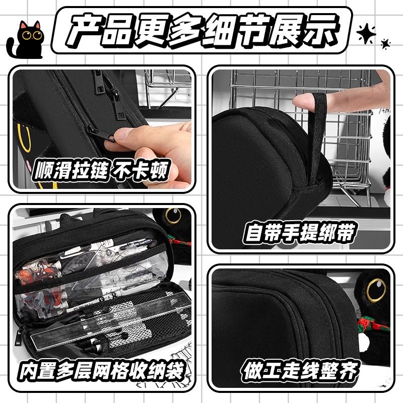黑色小猫大容量笔袋初中女生文具笔盒男孩2025新款文具袋女孩文具盒小学生用铅笔袋可爱猫咪高颜值文具收纳盒