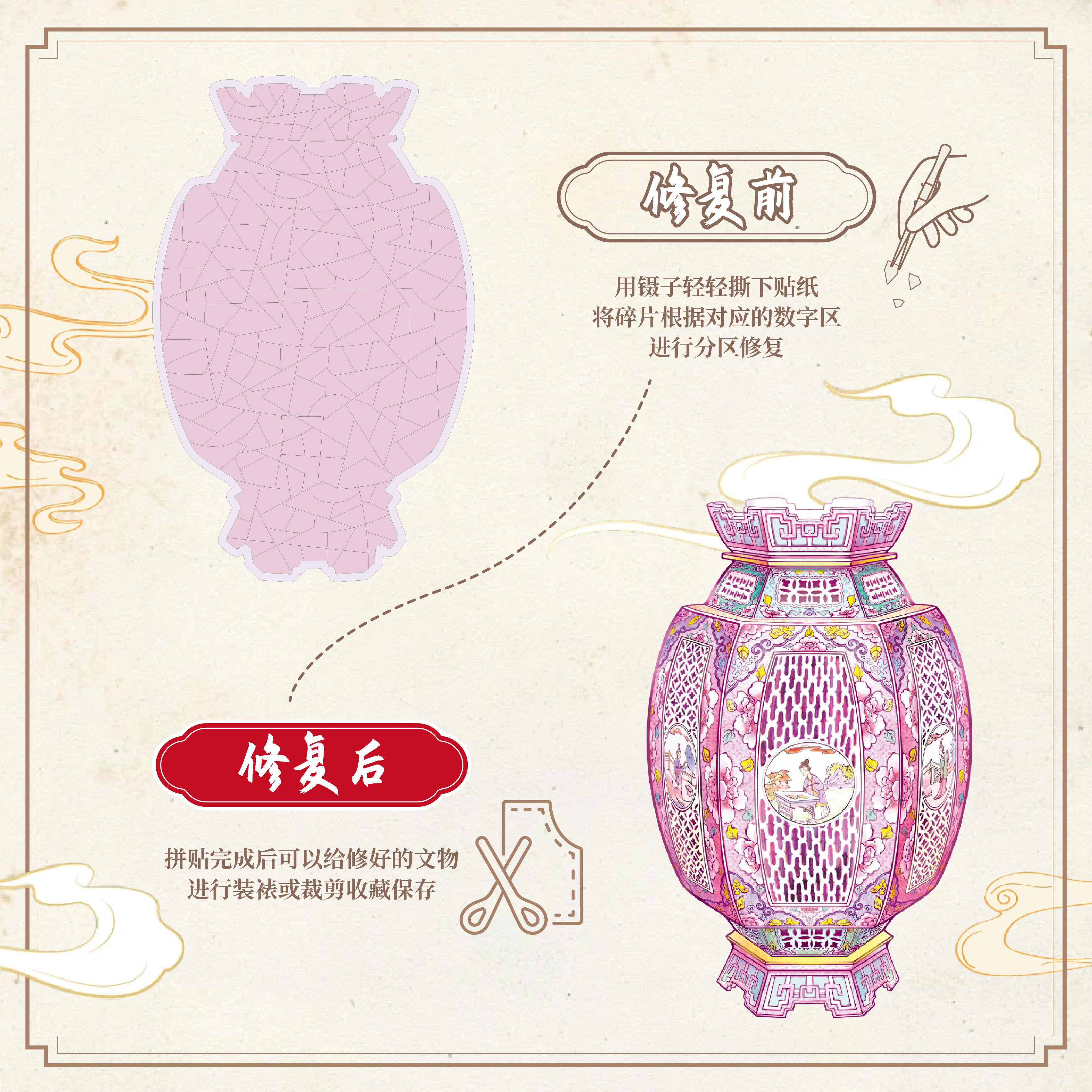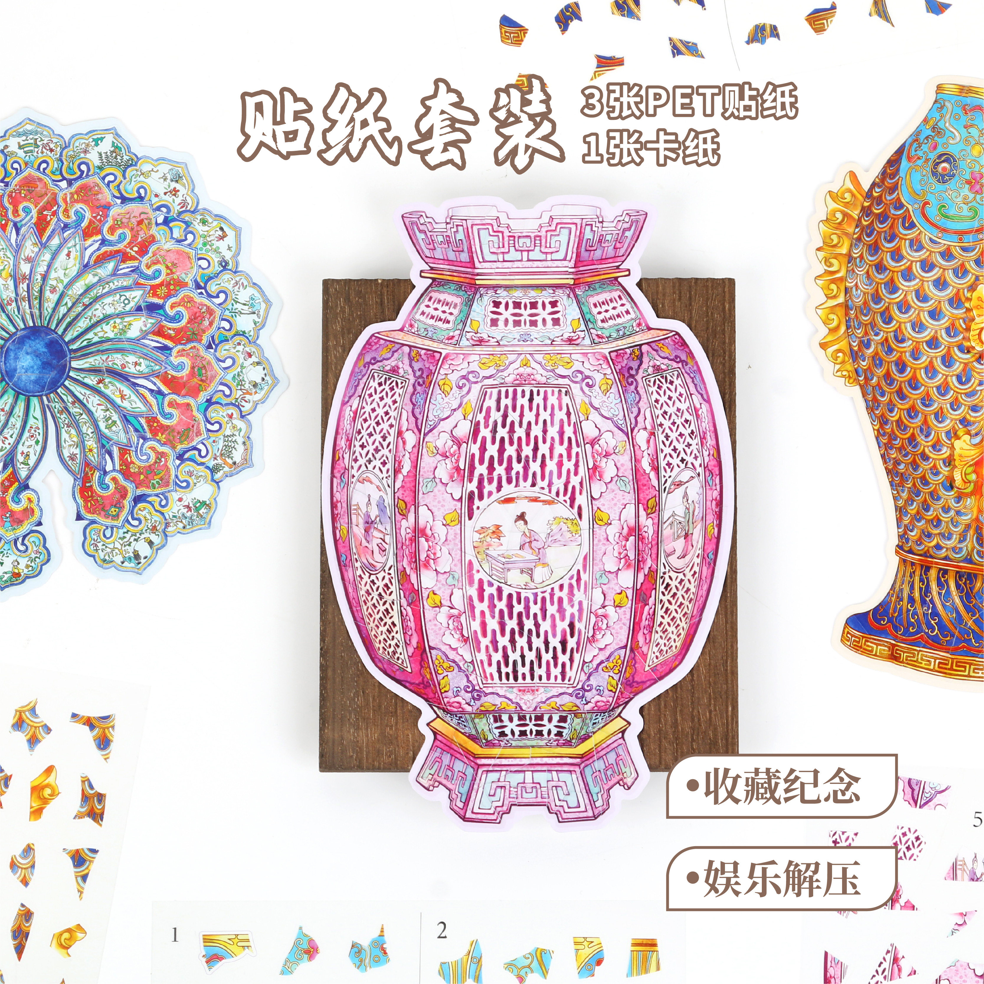 TIPETOYS国风海外遗珍模拟文物修复造景贴纸乾隆鱼瓶历史古董瓷器微缩3D立体拼图diy手工儿童玩具贴画