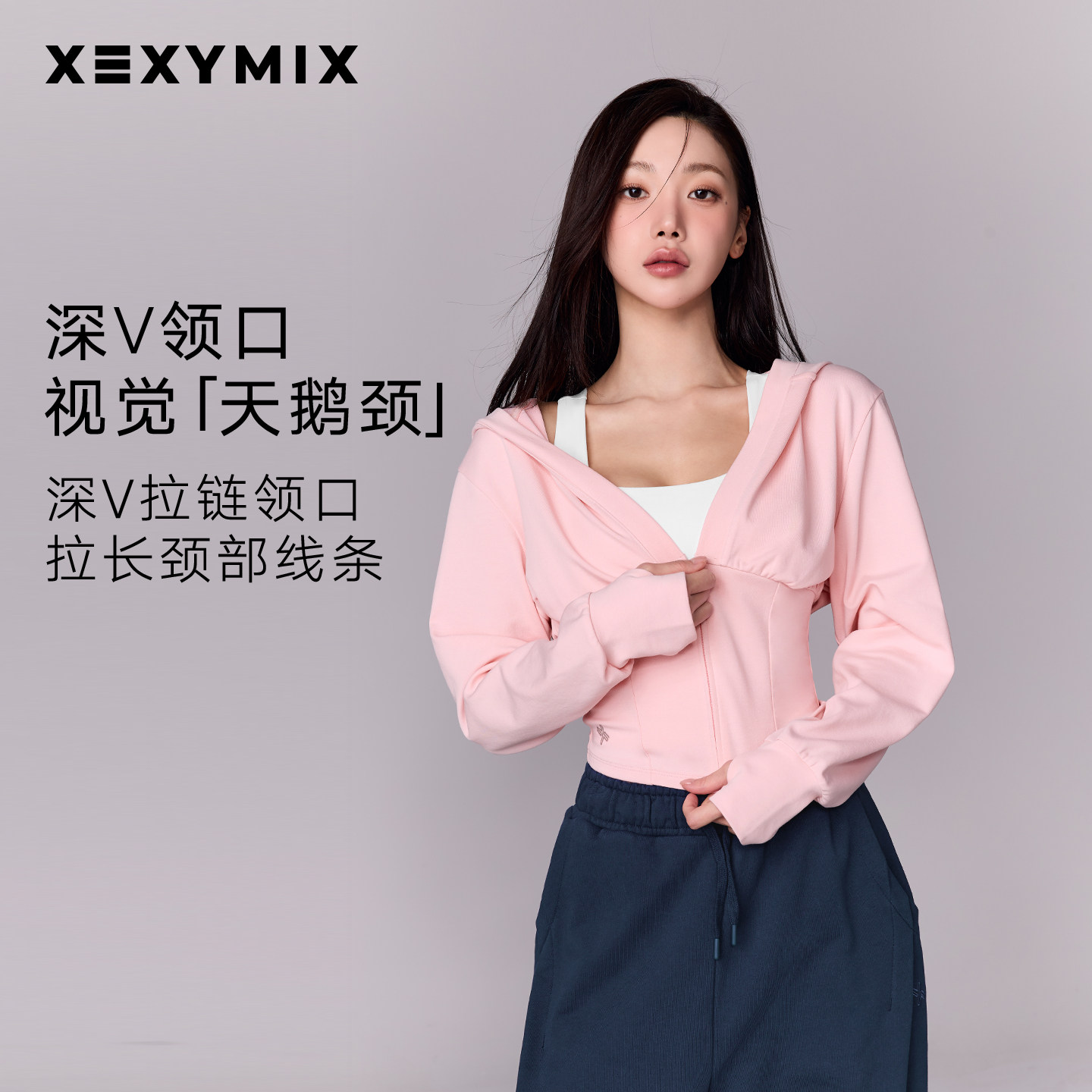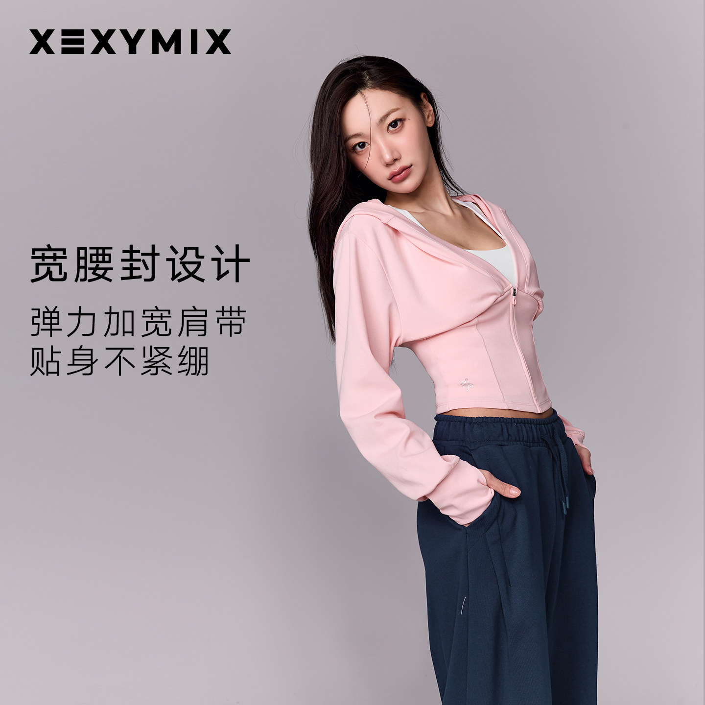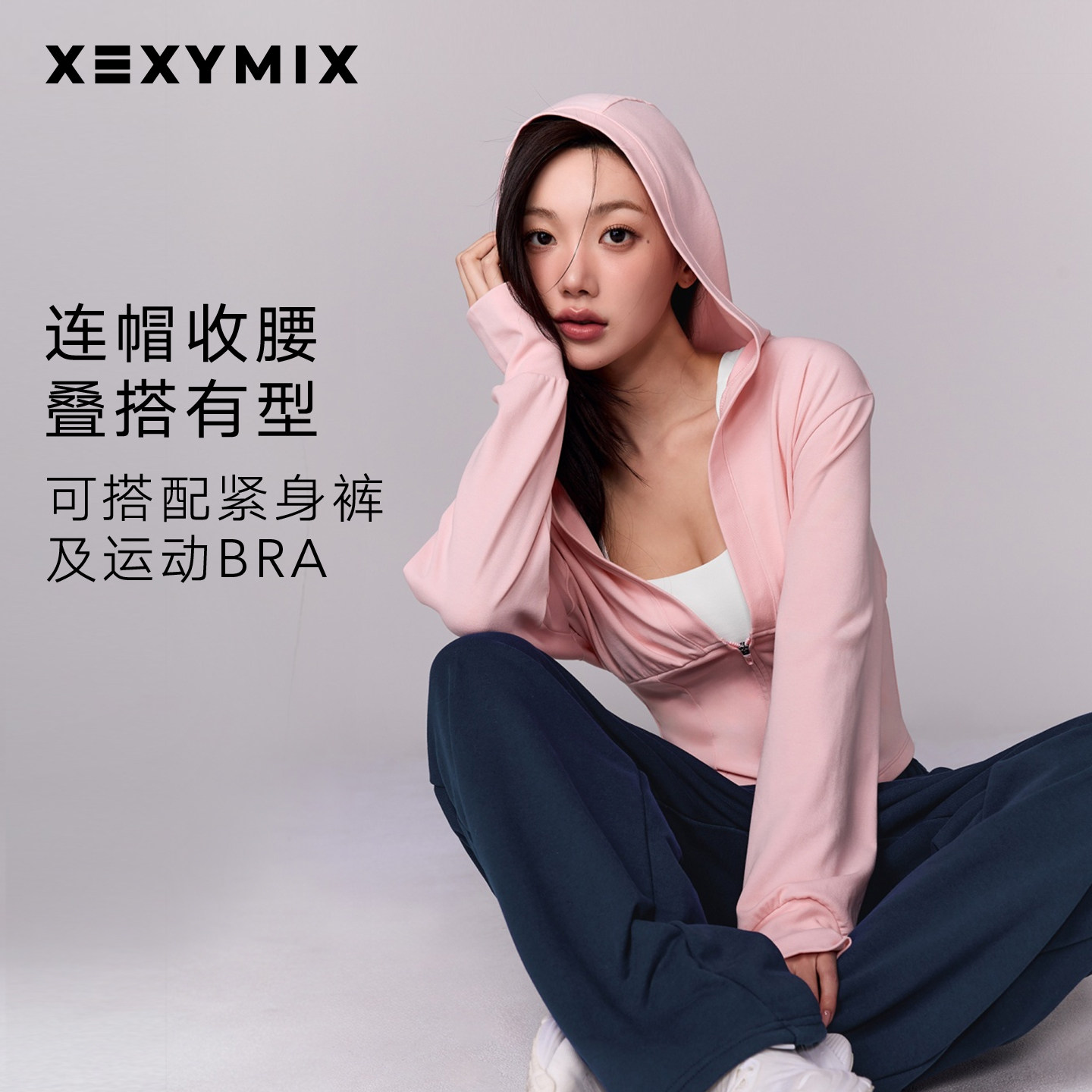 xexymix杰克茜韩国进口女连帽宽腰封开衫短款外套防晒XFL1JL1001C