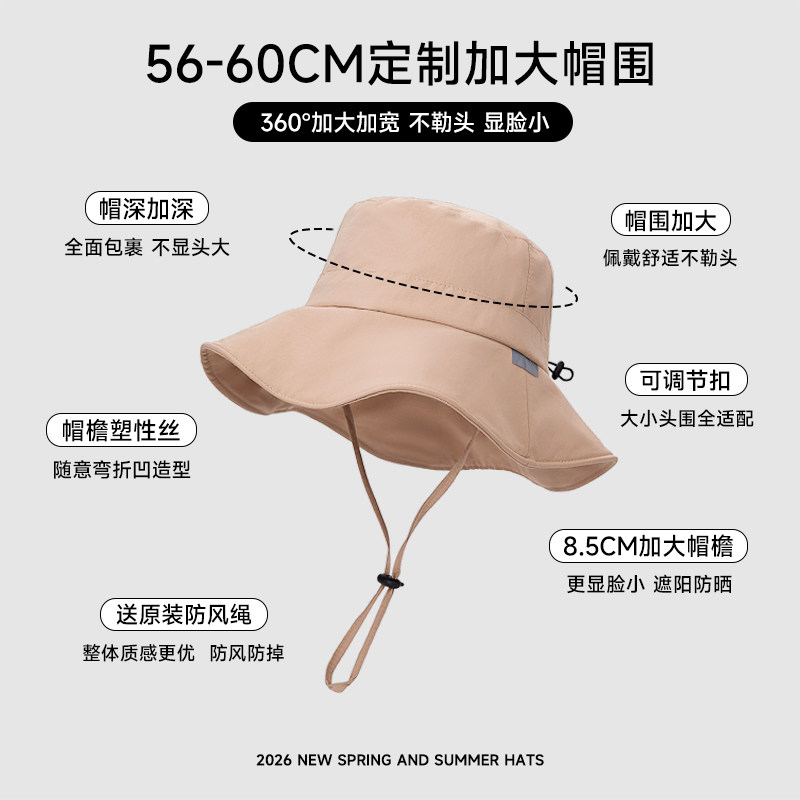 稻草人2026新款户外登山帽大头围渔夫帽防晒帽女夏季大檐遮阳帽子
