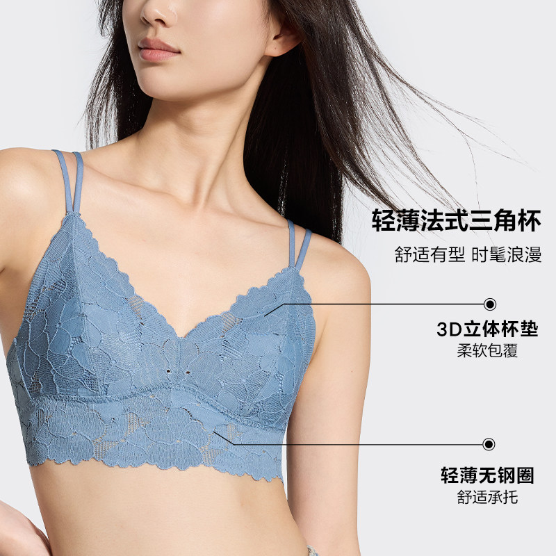 直降228|维密性感繁花蕾丝无钢圈法式三角杯美背背心文胸内衣女