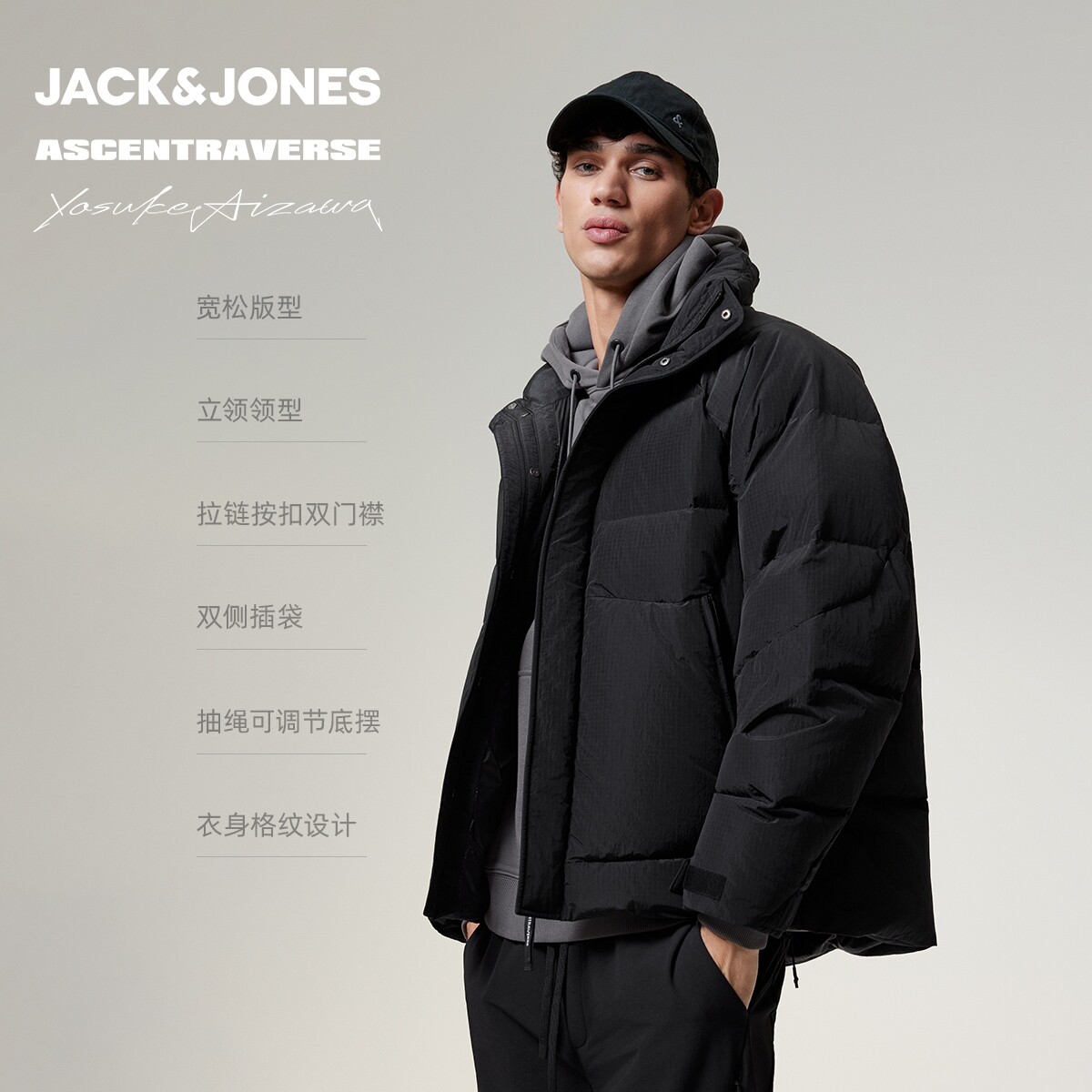 杰克琼斯×AIZAWA设计师联名冬季羽绒服2025年新款立领百搭